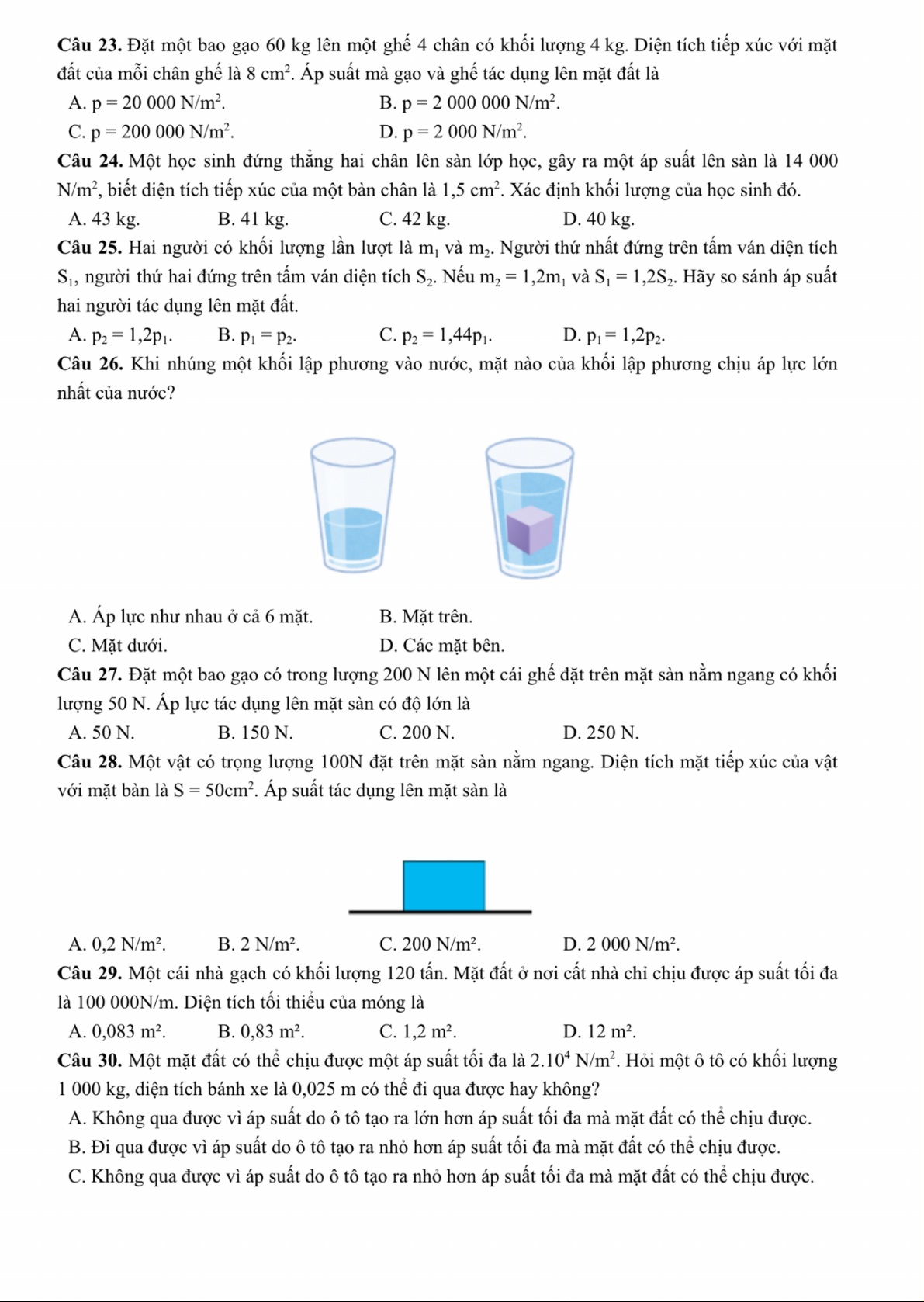 bai tap phan vat li ap suat len mot bae mat