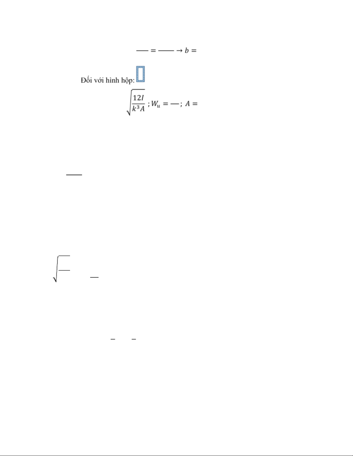 Đối với hình chữ nhật : lOMoAR cPSD| 58833082 𝑏ℎ 𝐼 = 12 Đối với hình hộp: 𝑘 𝑏 𝐼 = 𝐴 → 𝑏 = 12 𝑘 𝑏 12 2𝐼 𝑘𝑏 12𝐼 2𝐼 ; 𝑊 = 𝑘 𝑘𝑏 𝛾 𝑡