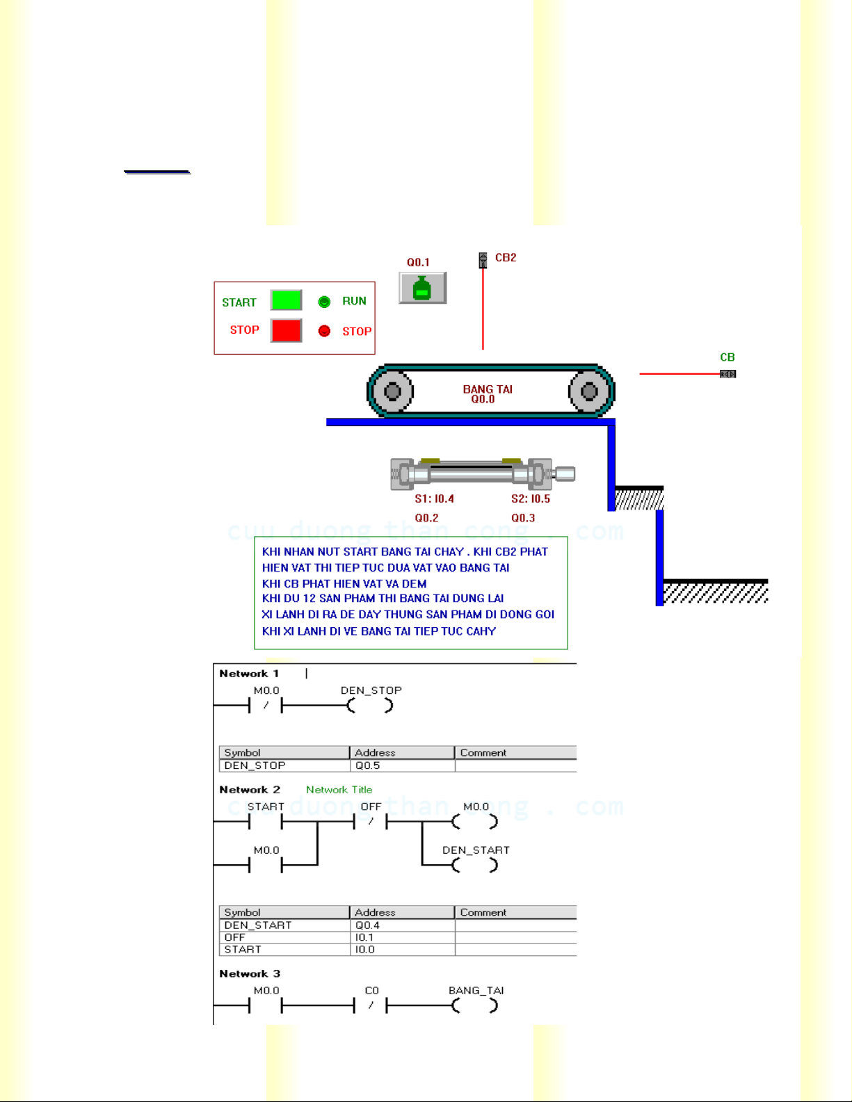 Đèn đỏ (DEN STOP) thì băng tải ko làm việc