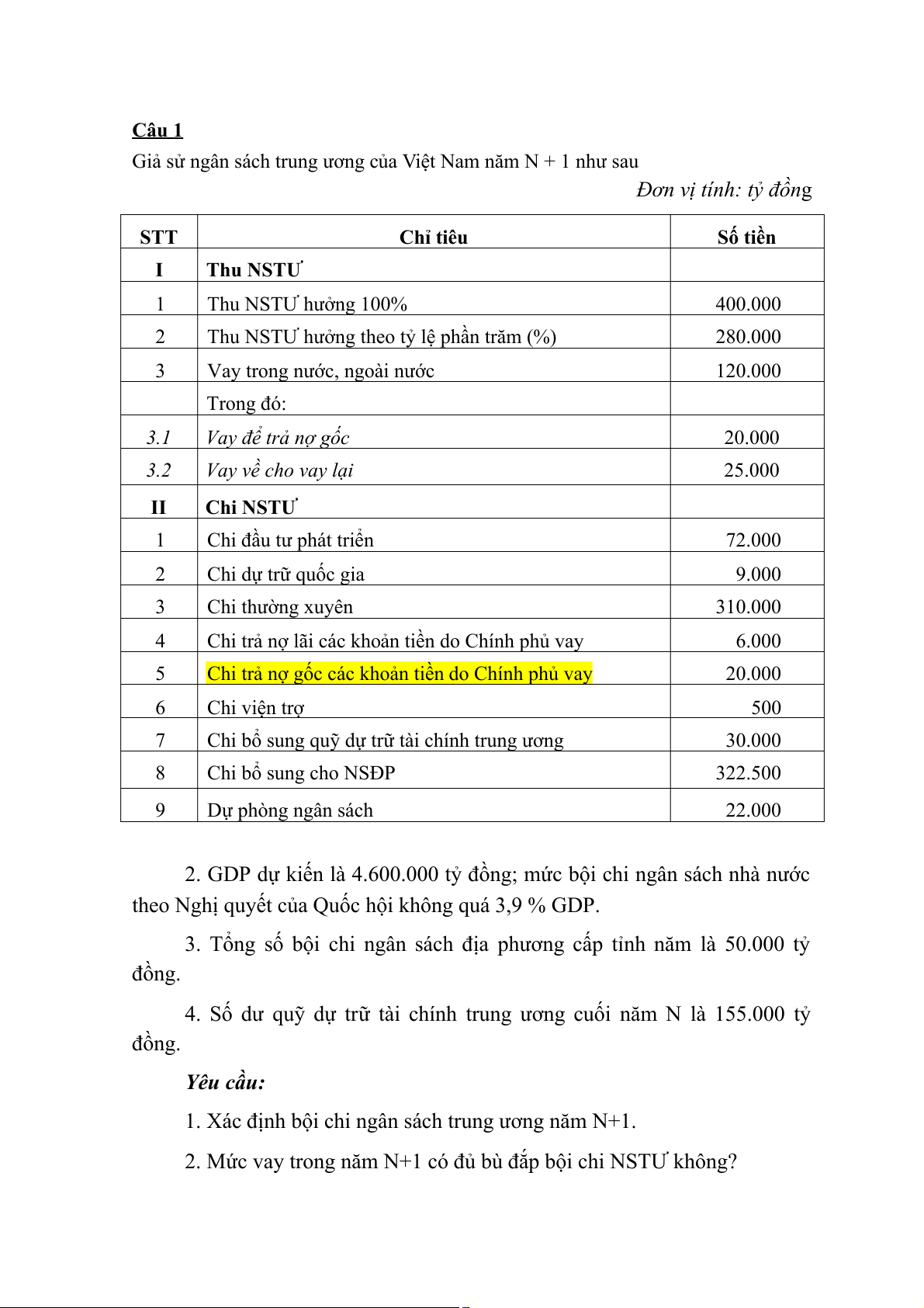 (Biết rằng , NSTW chỉ trả nợ gốc tiền vay từ nguồn vay nợ) Bài 5: