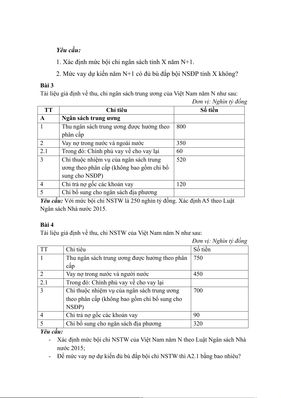 - Xác định mức bội chi NSTW của Việt Nam năm N theo Luật Ngân sách Nhà nước 2015;