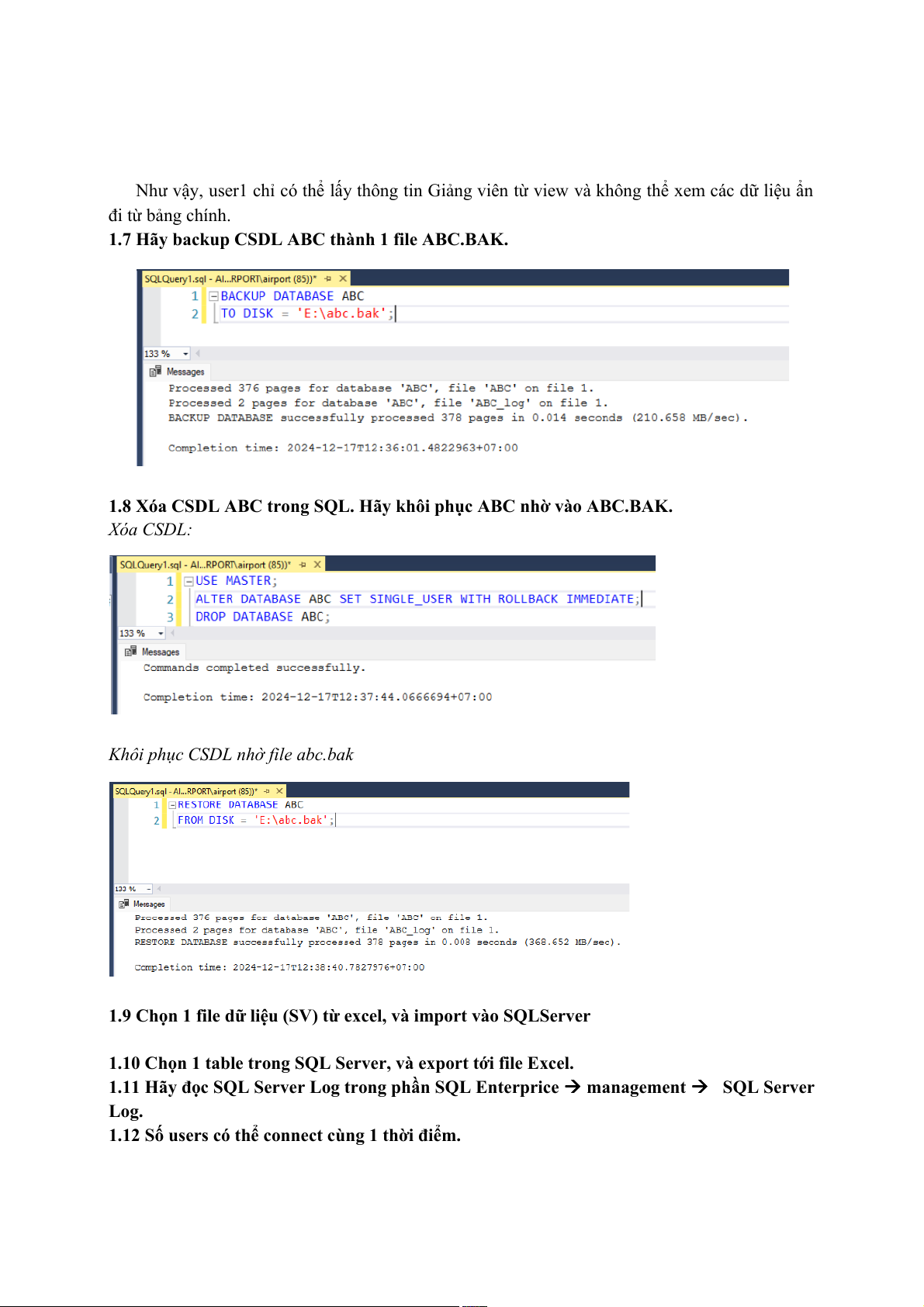 1.7 Hãy backup CSDL ABC thành 1 file ABC.BAK.