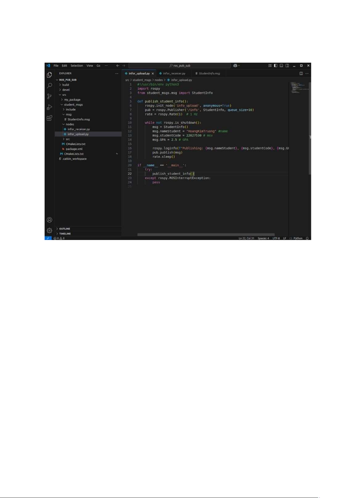 2.Viết một node publisher (python/ C++) tên là /info_upload ể ăng thông tin từ