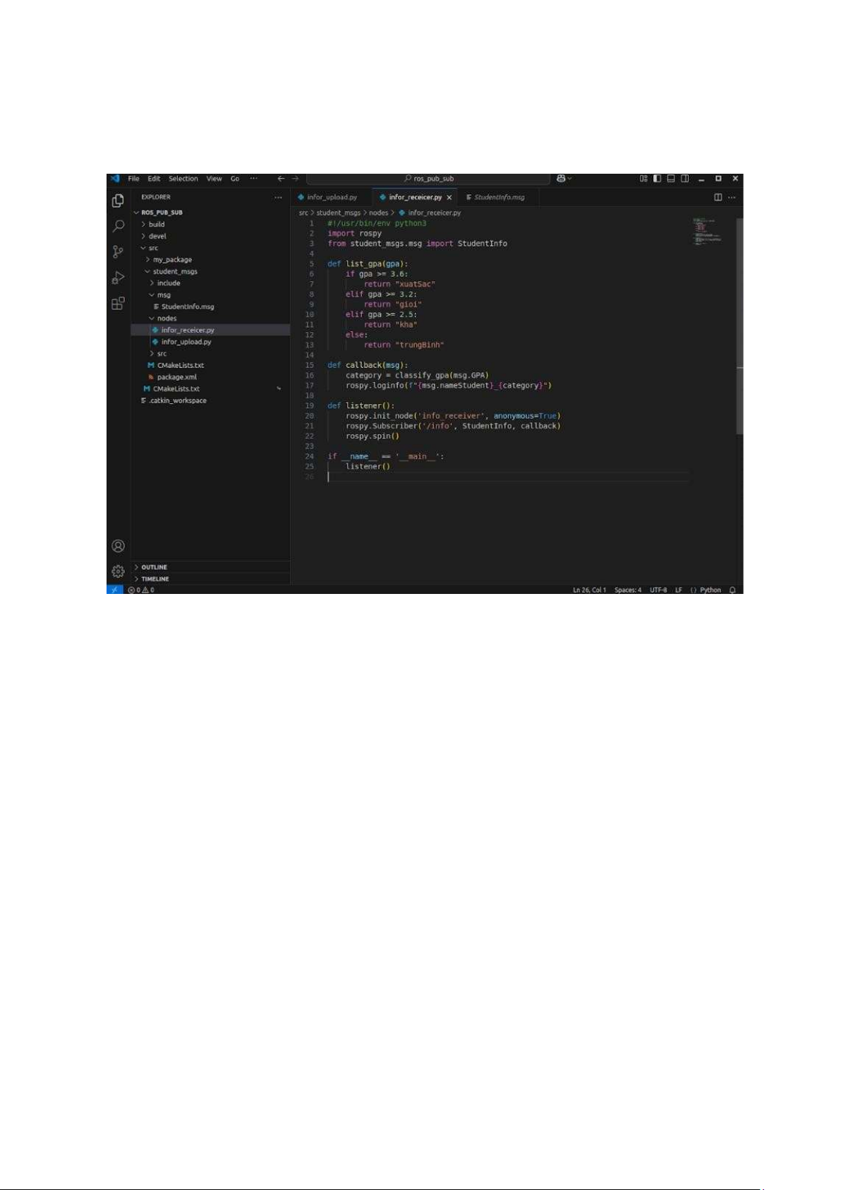 3.Viết một node subscriber (python/ C++) tên là /info_receiver ể nhận thông tin