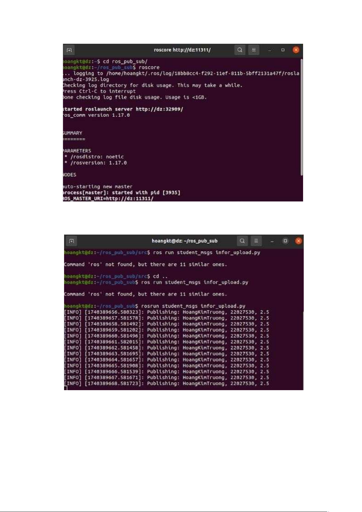 Sử dụng terminal thứ 2, chạy rosrun cho publisher ể upload dữ liệu \ lOMoAR cPSD| 59735516