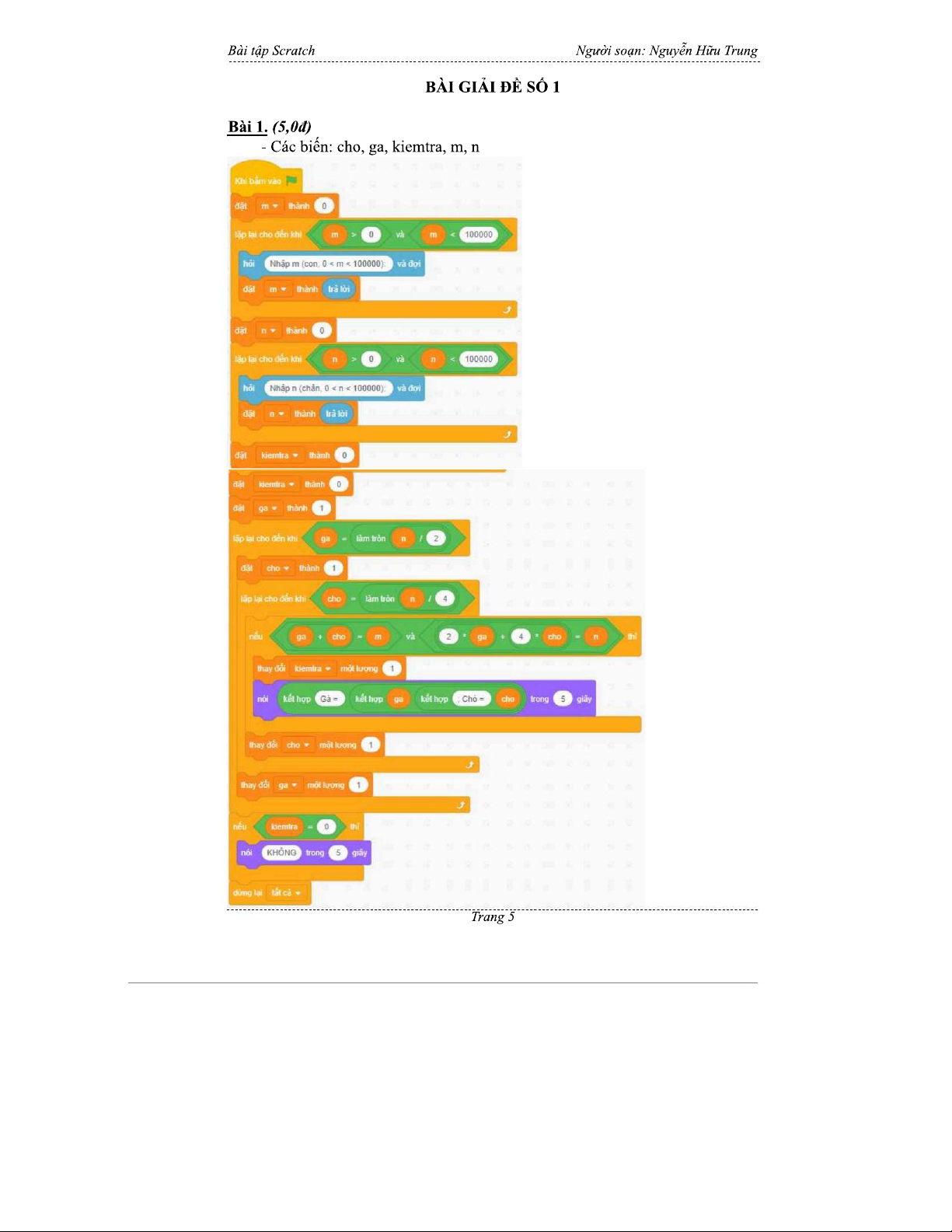Bài Tập Scratch - Học Sinh THCS Trung Học Cơ Sở