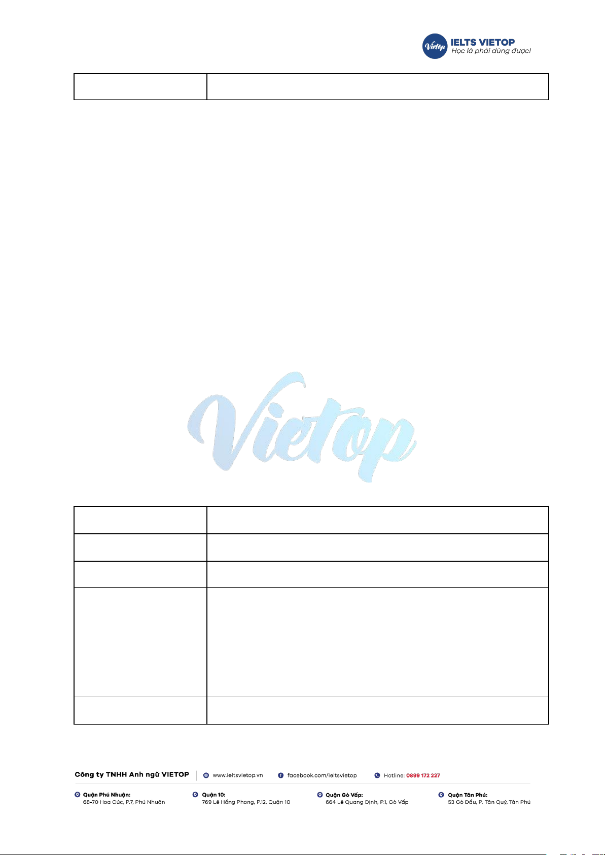 Fanpage: https://www.facebook.com/ieltsvietop Email: info@vietop.edu.vn