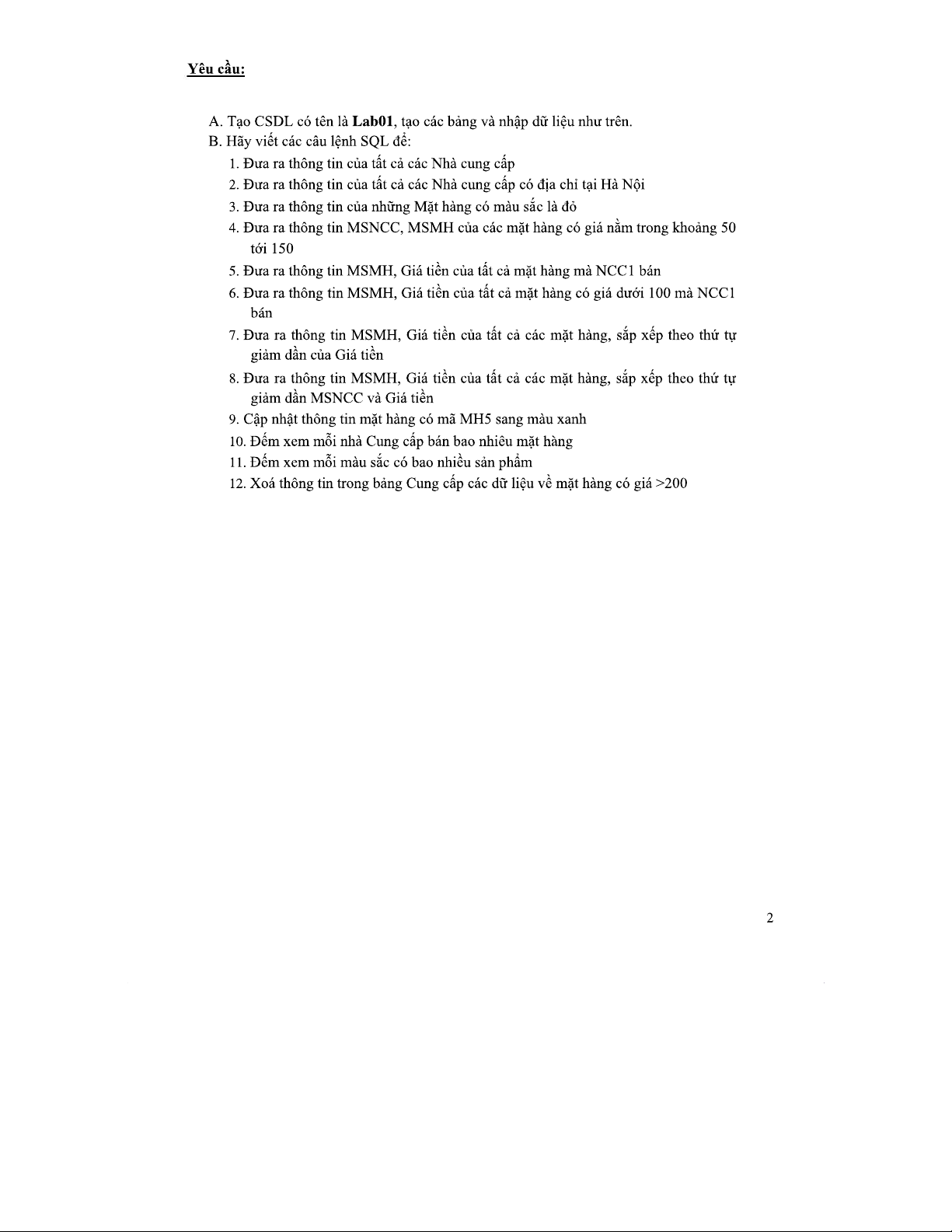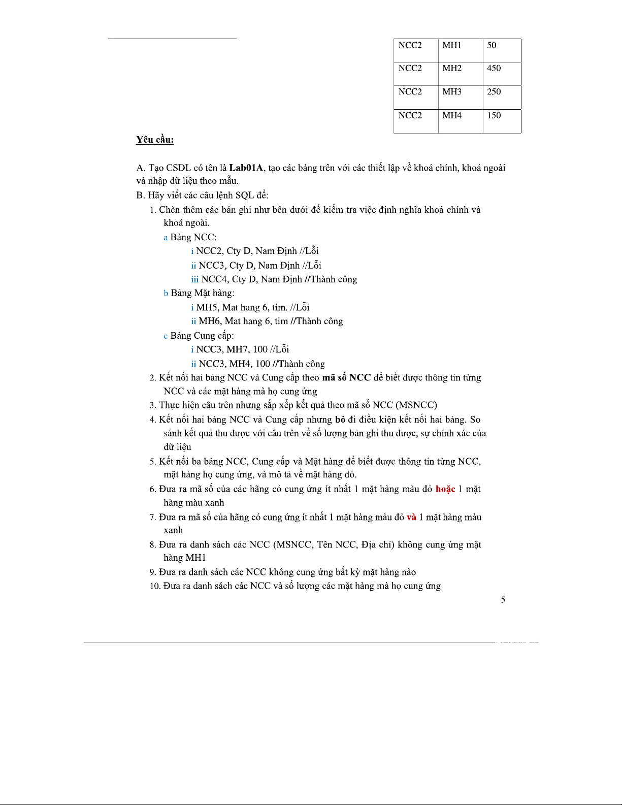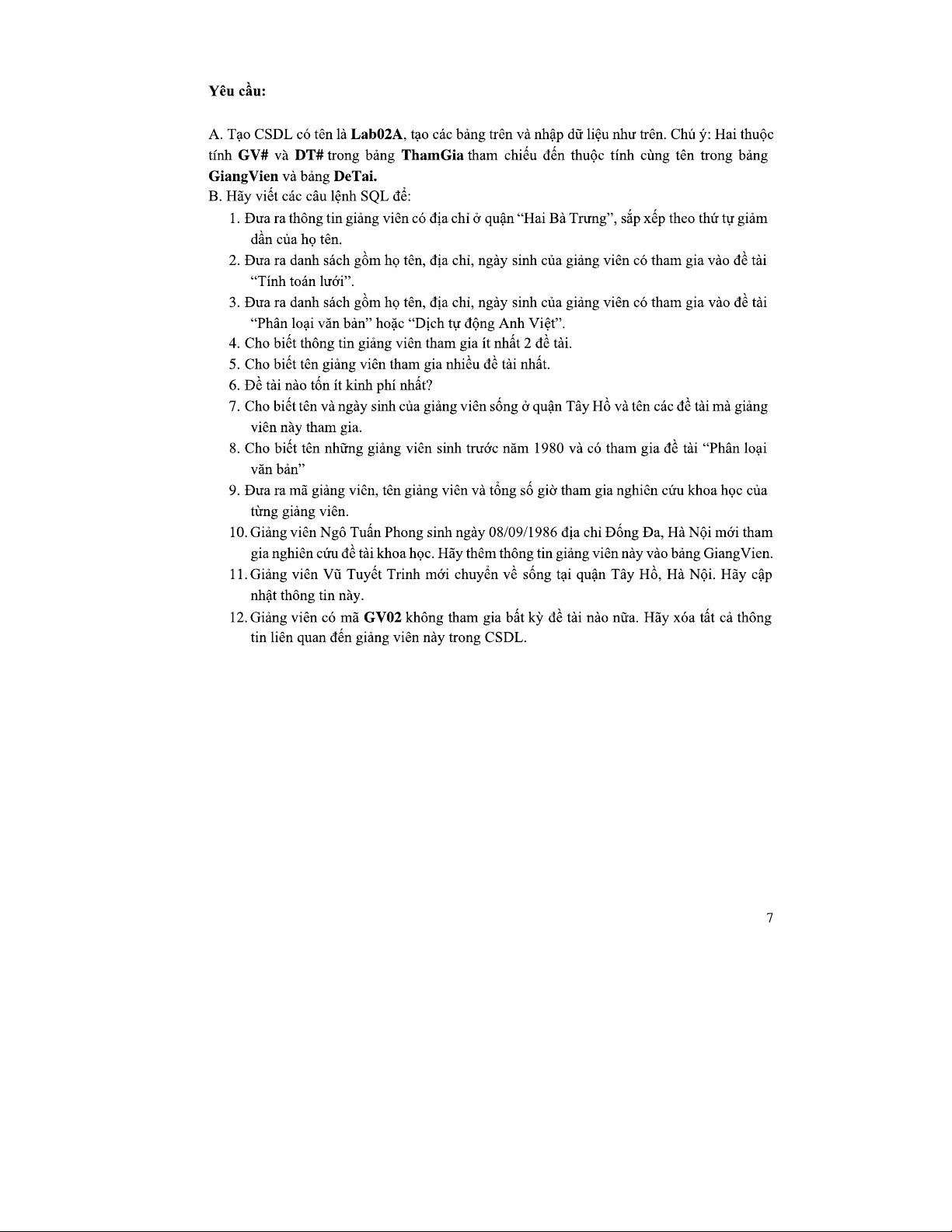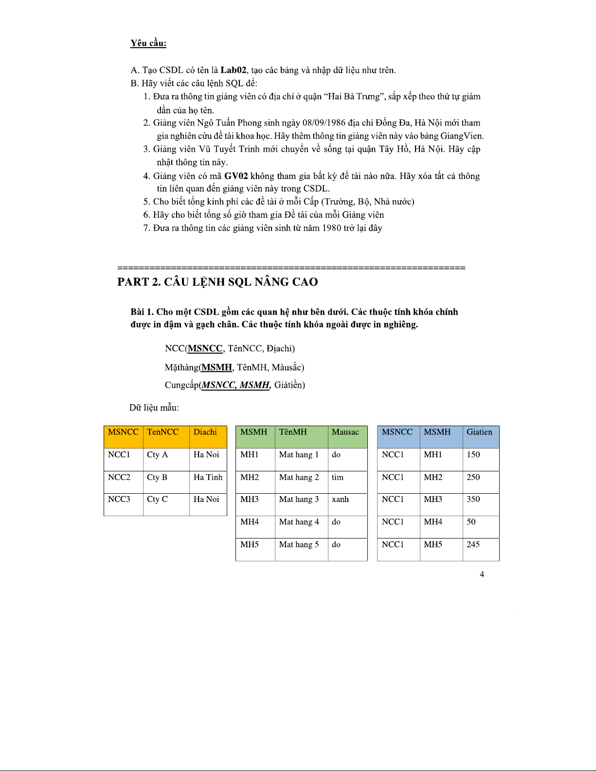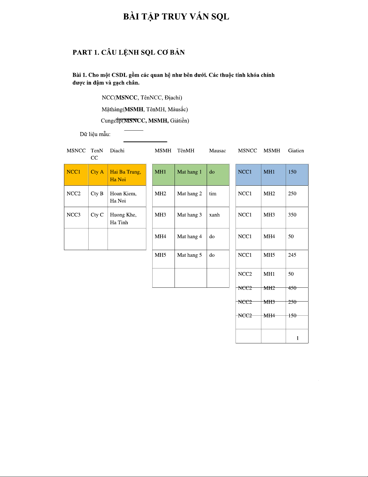 Bài Tập SQL 20211: Hướng Dẫn Câu Lệnh Cơ Bản và Nâng Cao