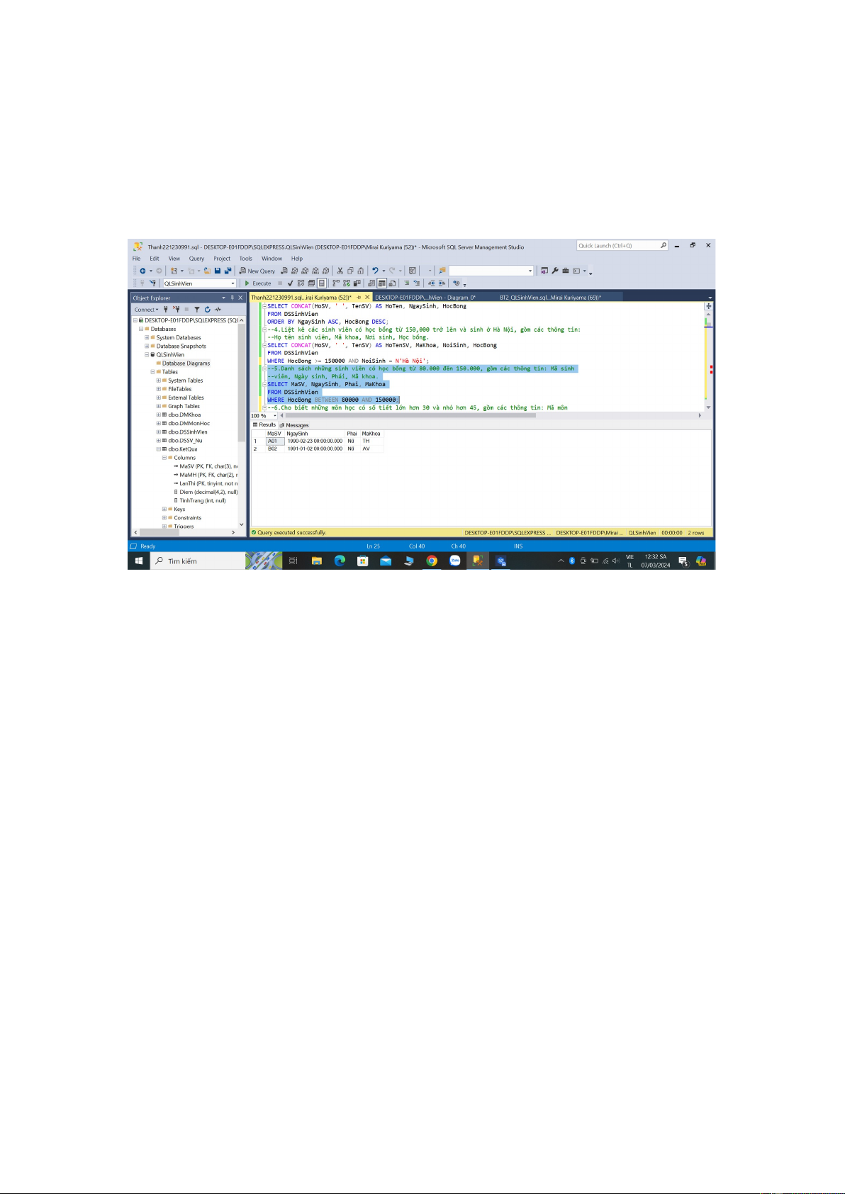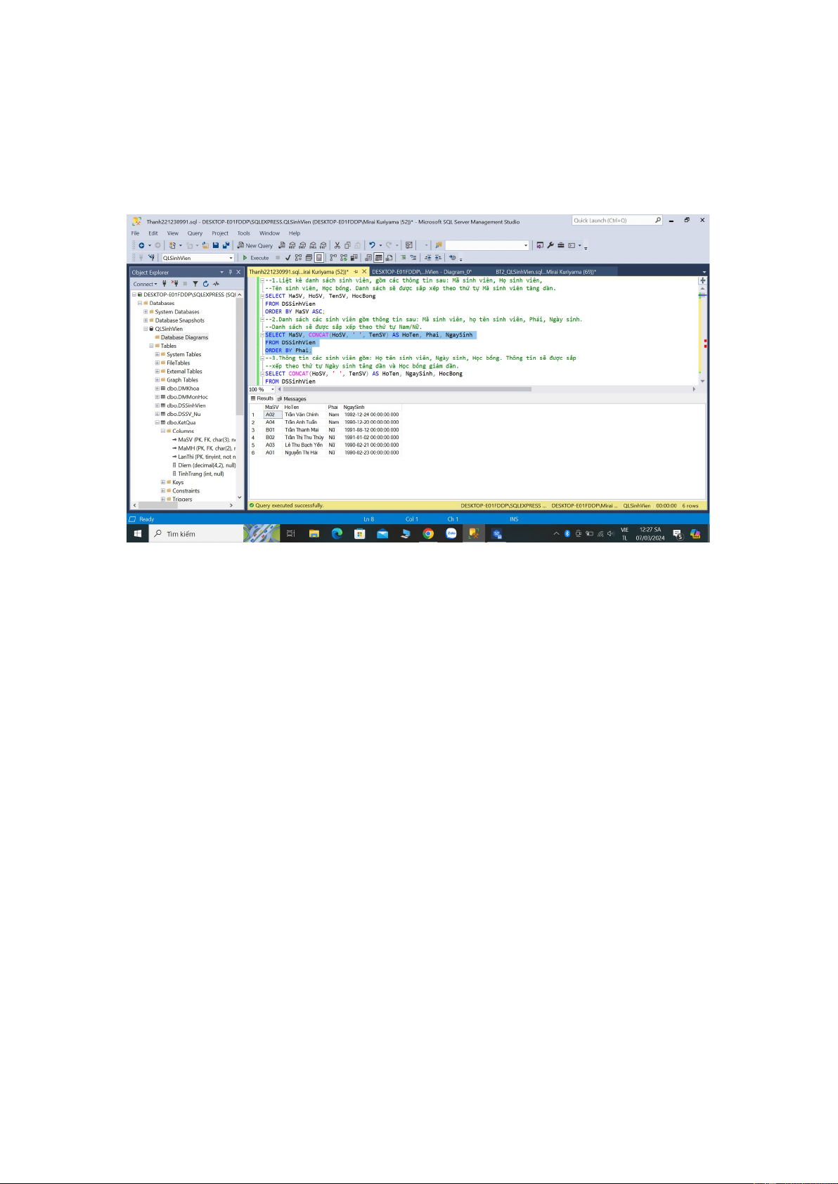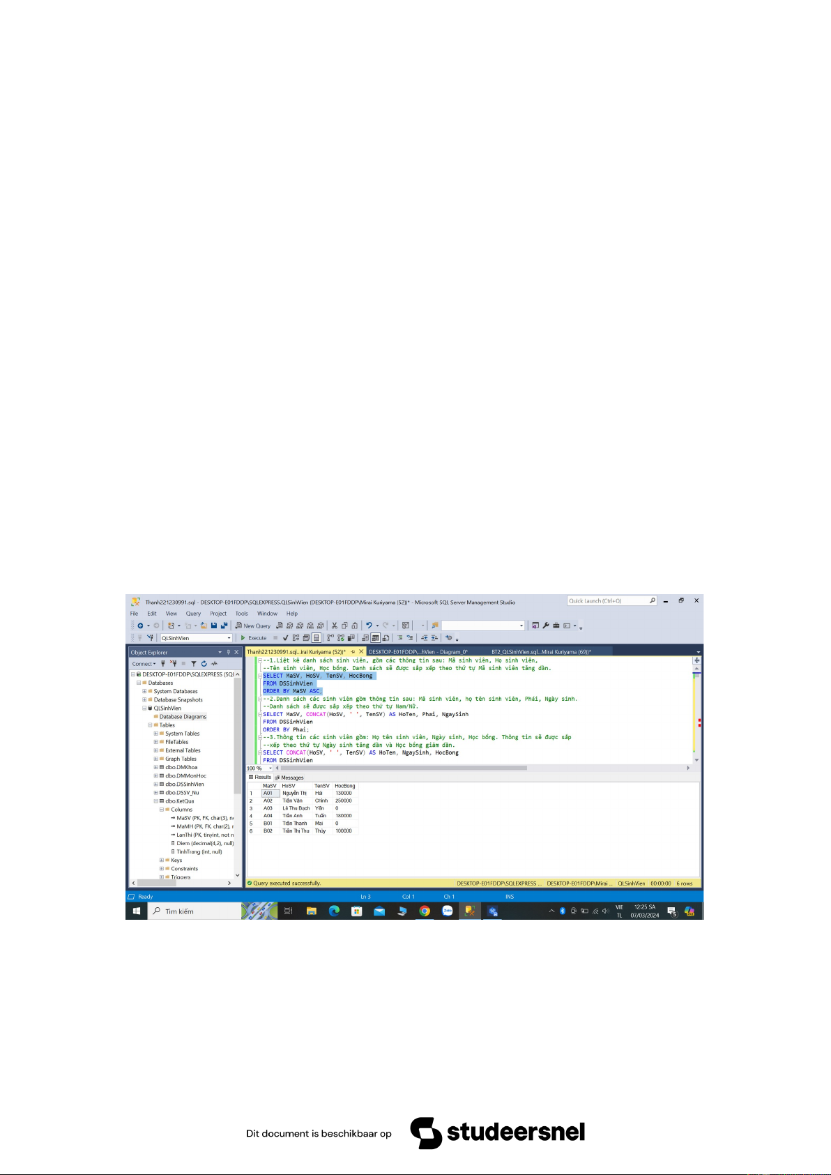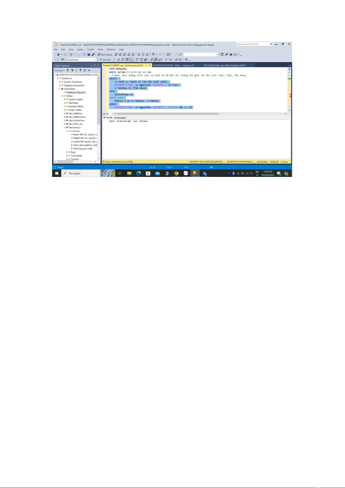 Bài tập : Cho CSDL về quản lý bán hàng trong file QLSinhVien.sql như hình dưới: