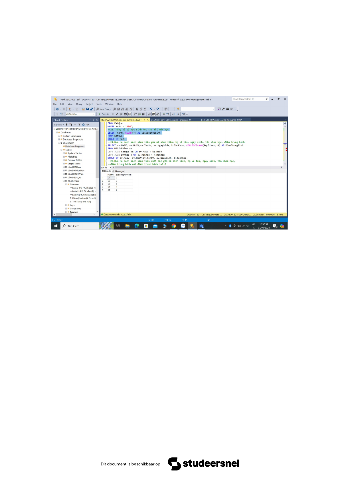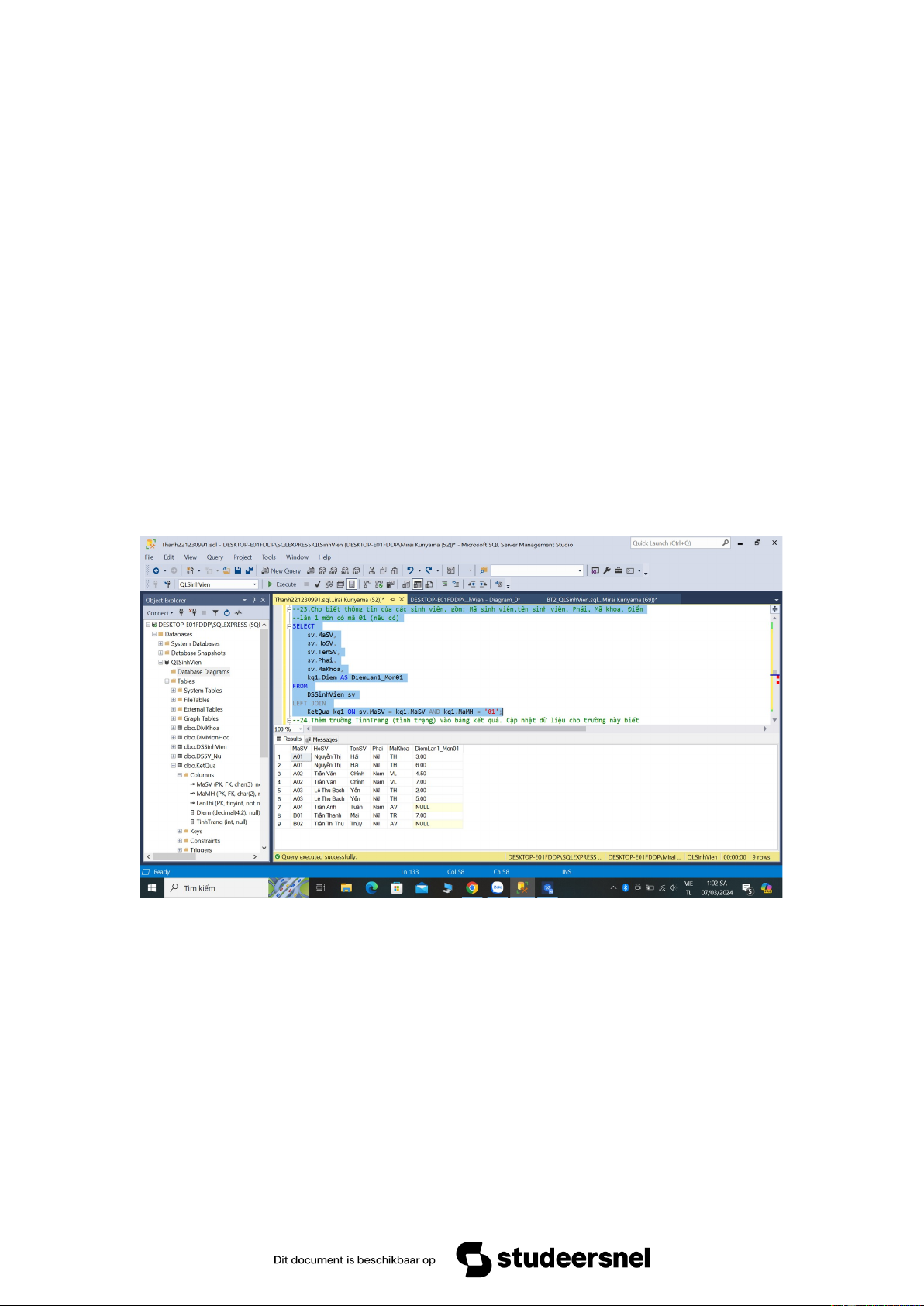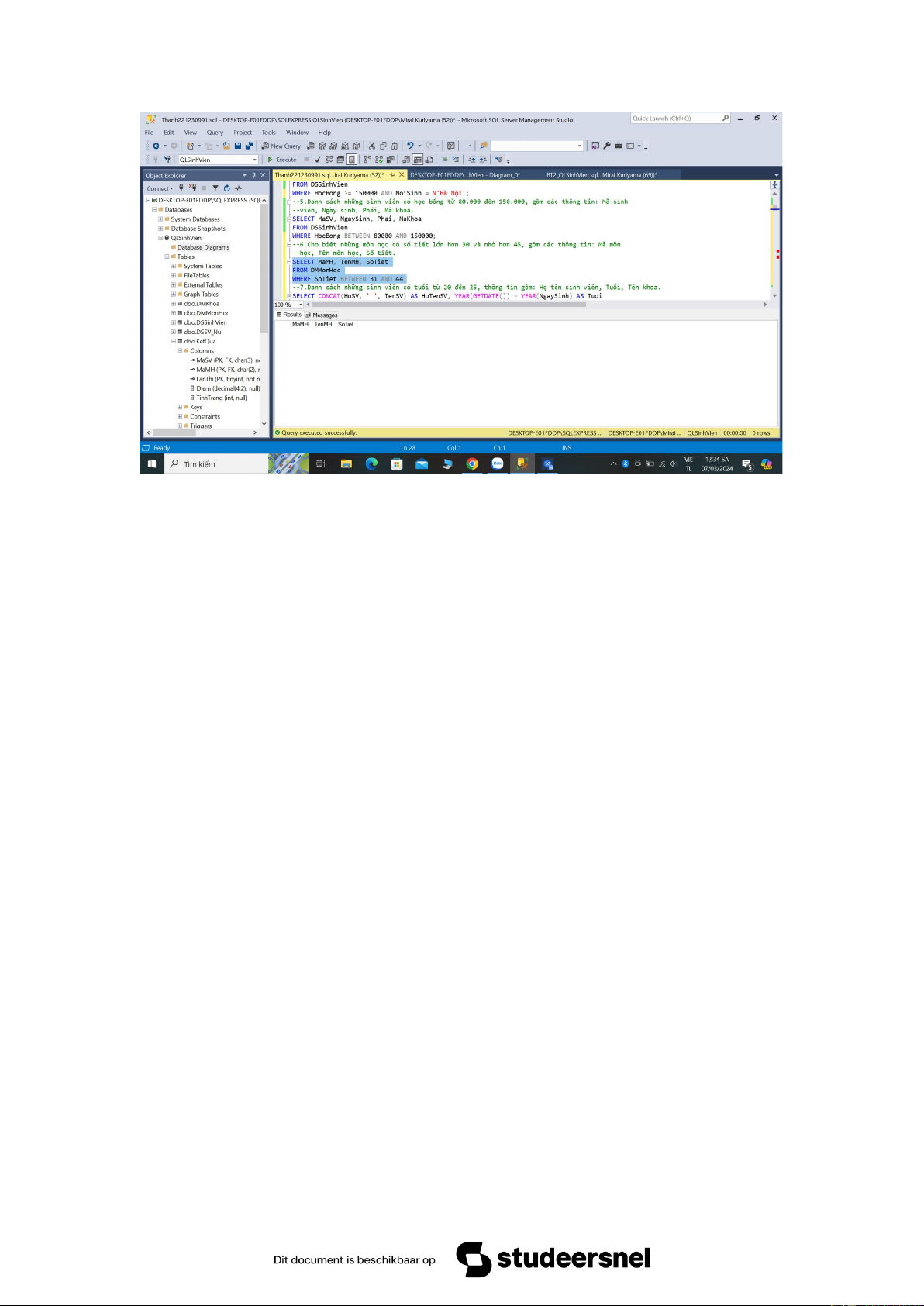 Bài tập : Cho CSDL về quản lý bán hàng trong file QLSinhVien.sql như hình dưới: