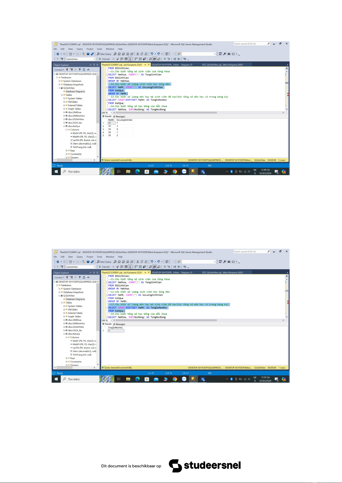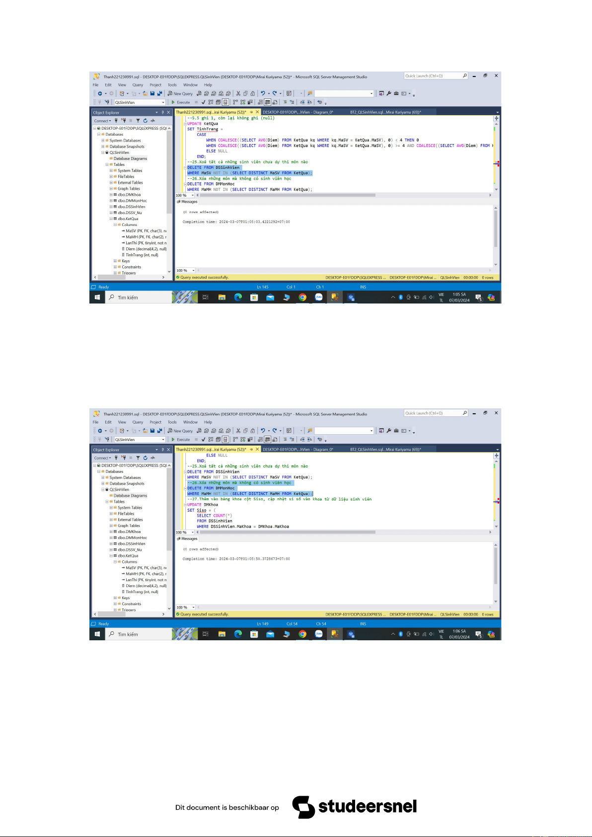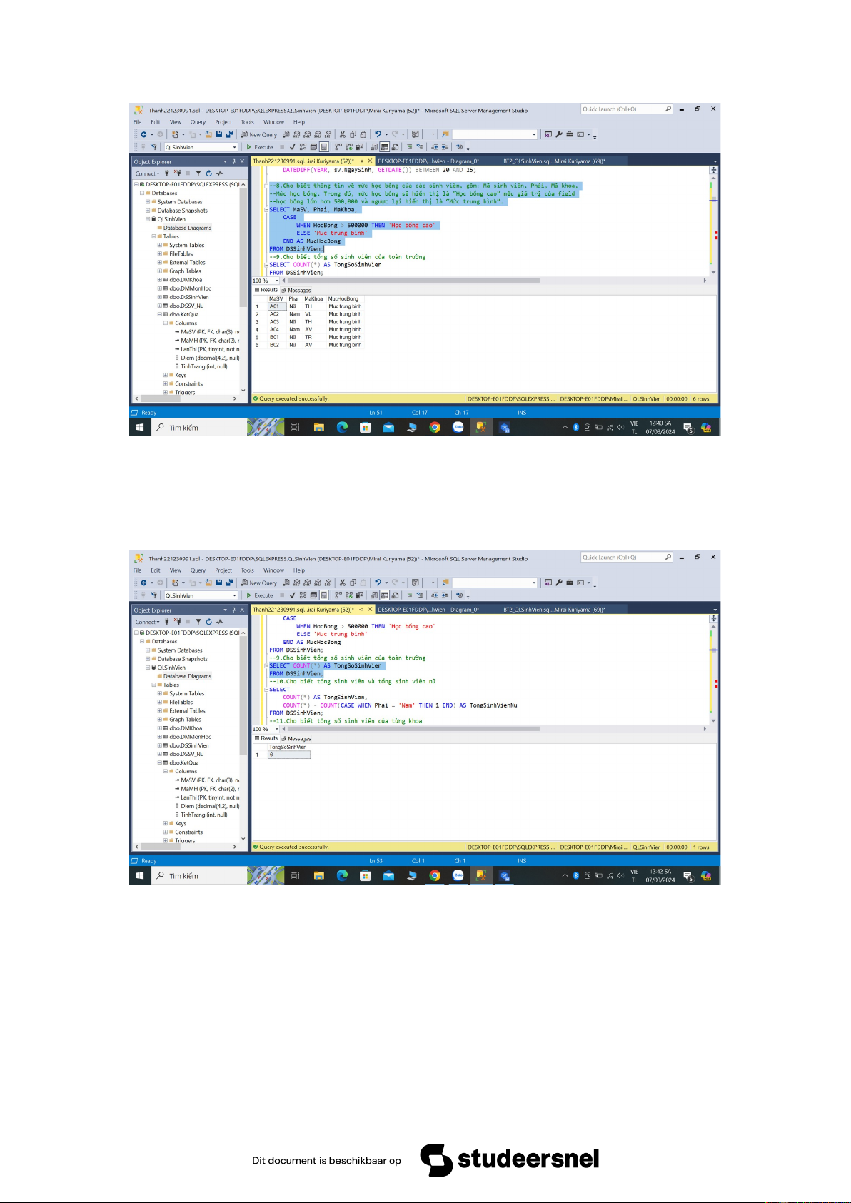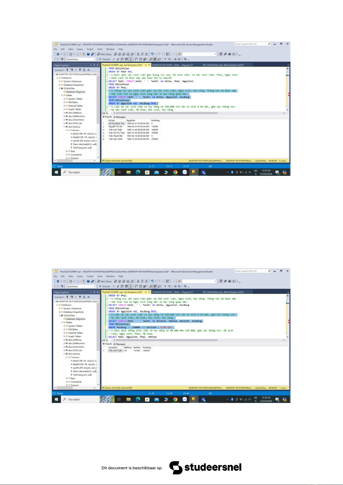 Bài tập : Cho CSDL về quản lý bán hàng trong file QLSinhVien.sql như hình dưới: