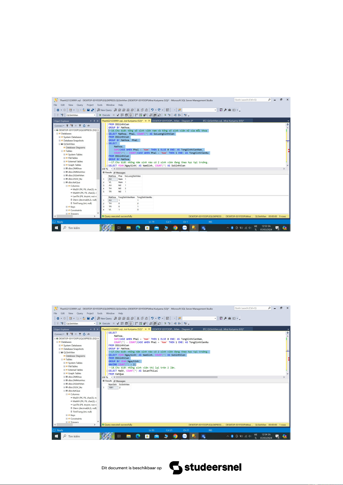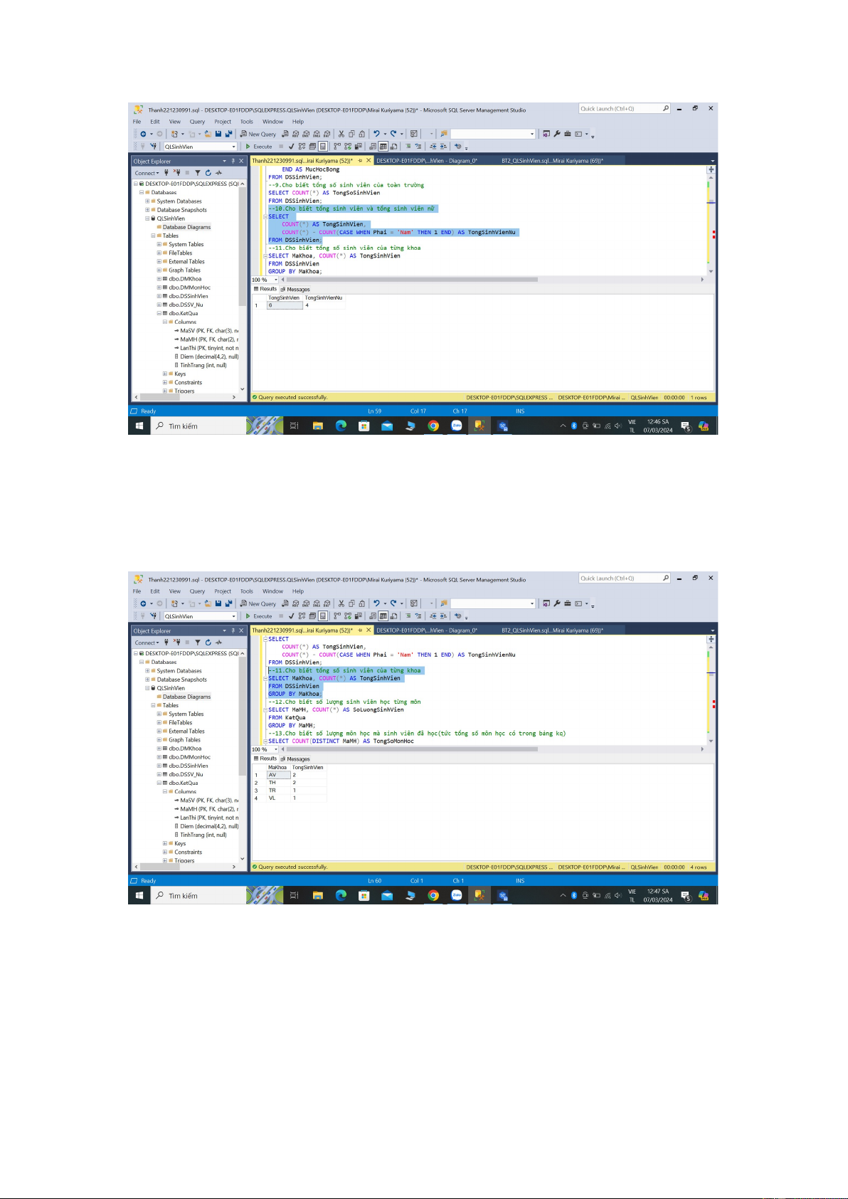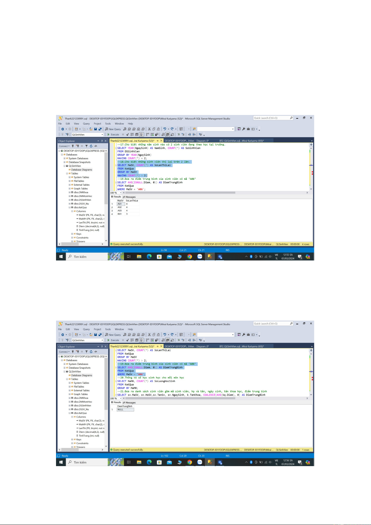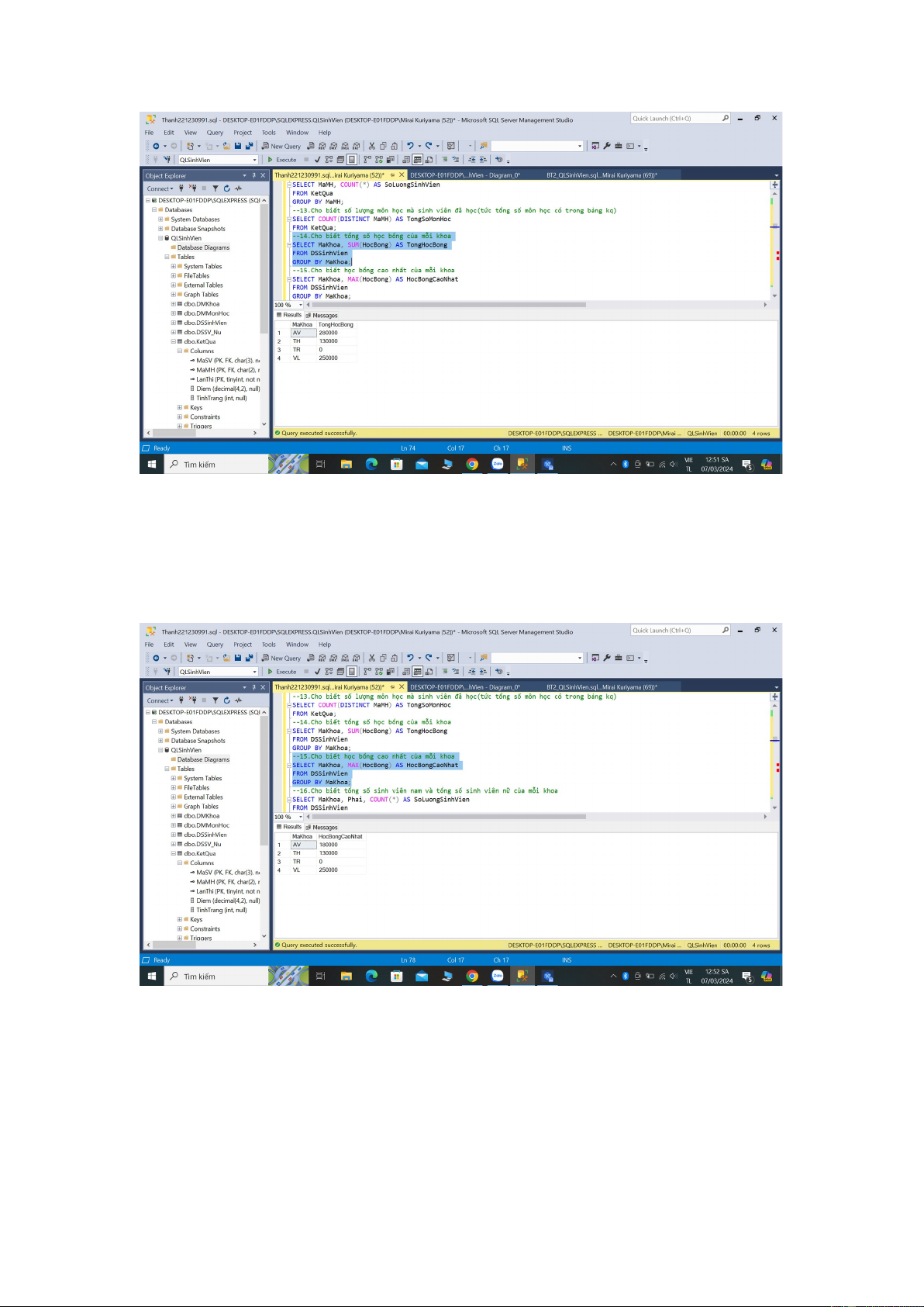 gồm đoạn code sql và phần kết quả sau khi chạy bằng cách chụp màn
