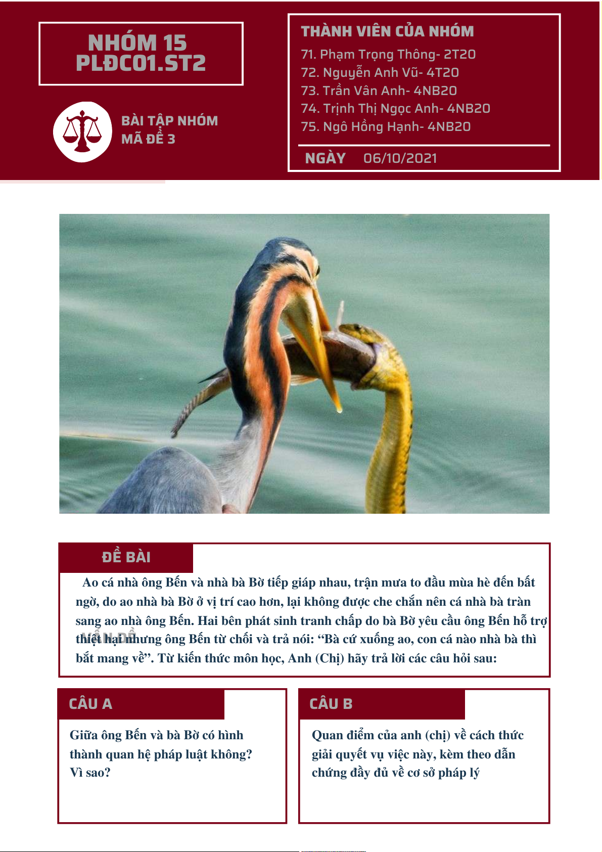 74. Trịnh Thị Ngọc Anh- 4NB20 BÀI TẬP NHÓM 75. Ngô Hồng Hạnh- 4NB20 MÃ ĐỀ 3 NGÀY 06/10/2021 ĐỀ BÀI