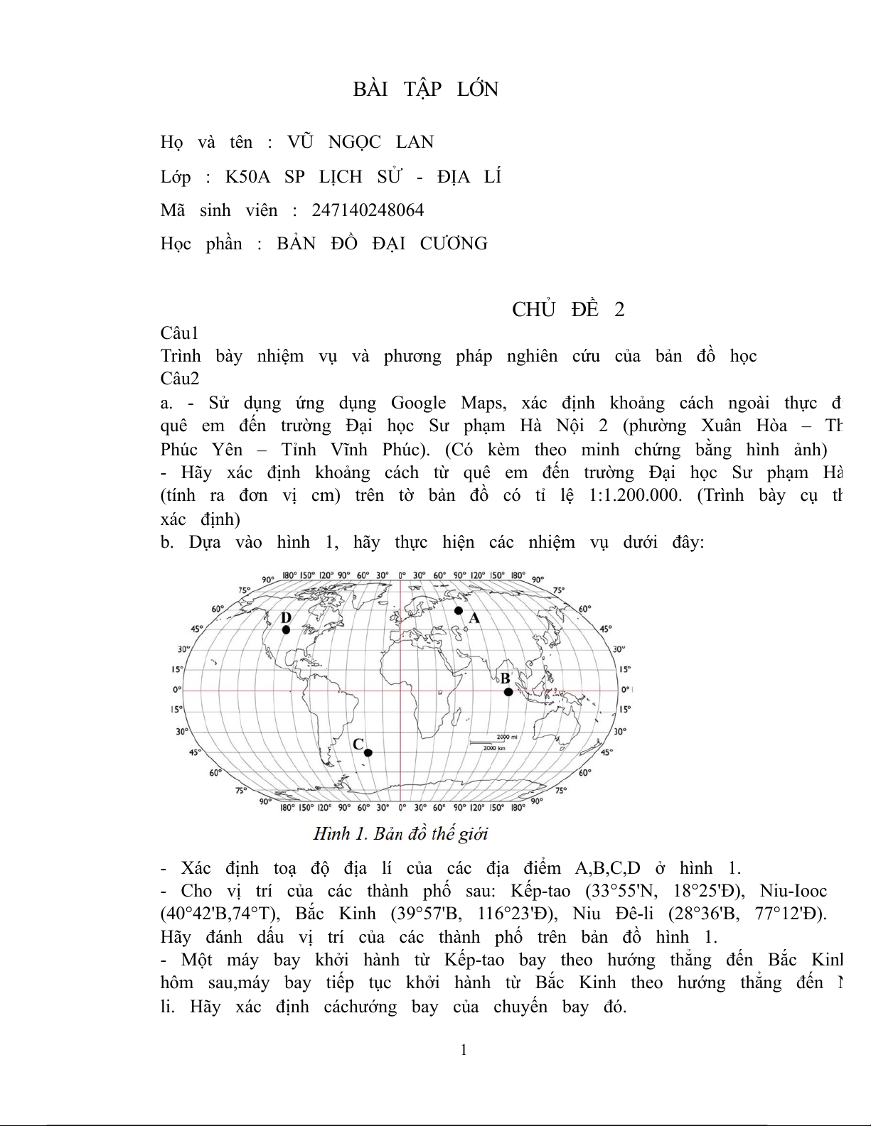 Học phần : BẢN ĐỒ ĐẠI CƯƠNG CHỦ ĐỀ 2 Câu 1