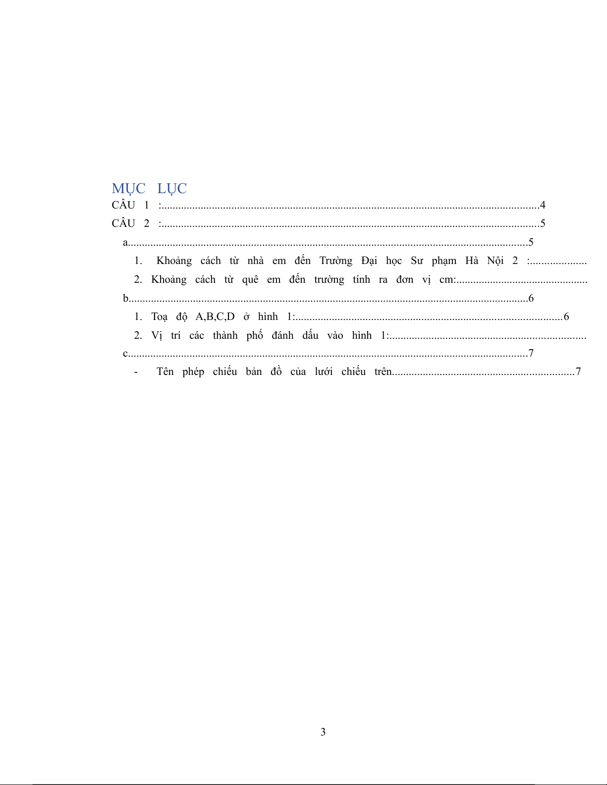 Tên phép chiếu bản đồ của lưới chiếu trên.................................................................7 3 4 CÂU 1 :