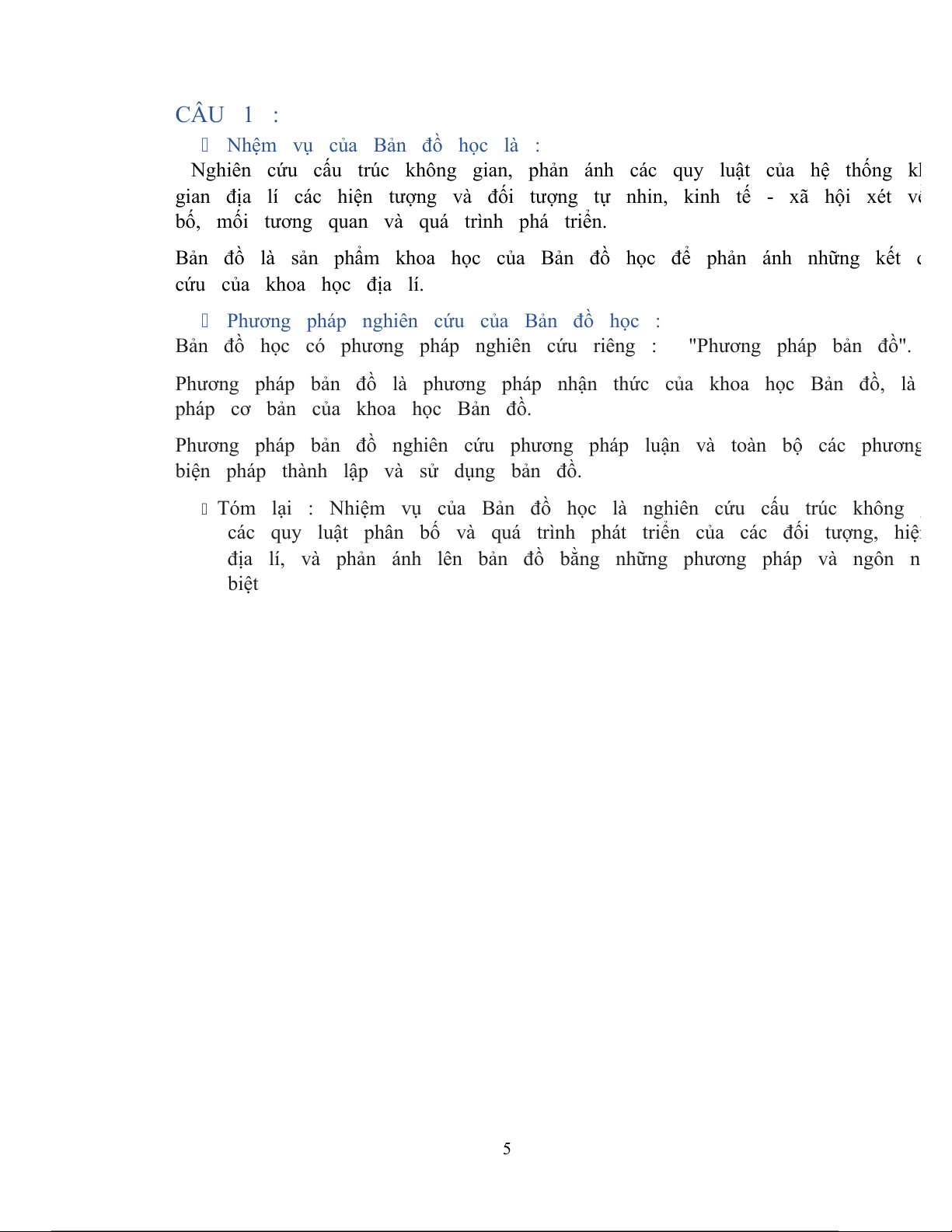 địa lí, và phản ánh lên bản đồ bằng những phương pháp và ngôn ng biệt 5 CÂU 2 : a