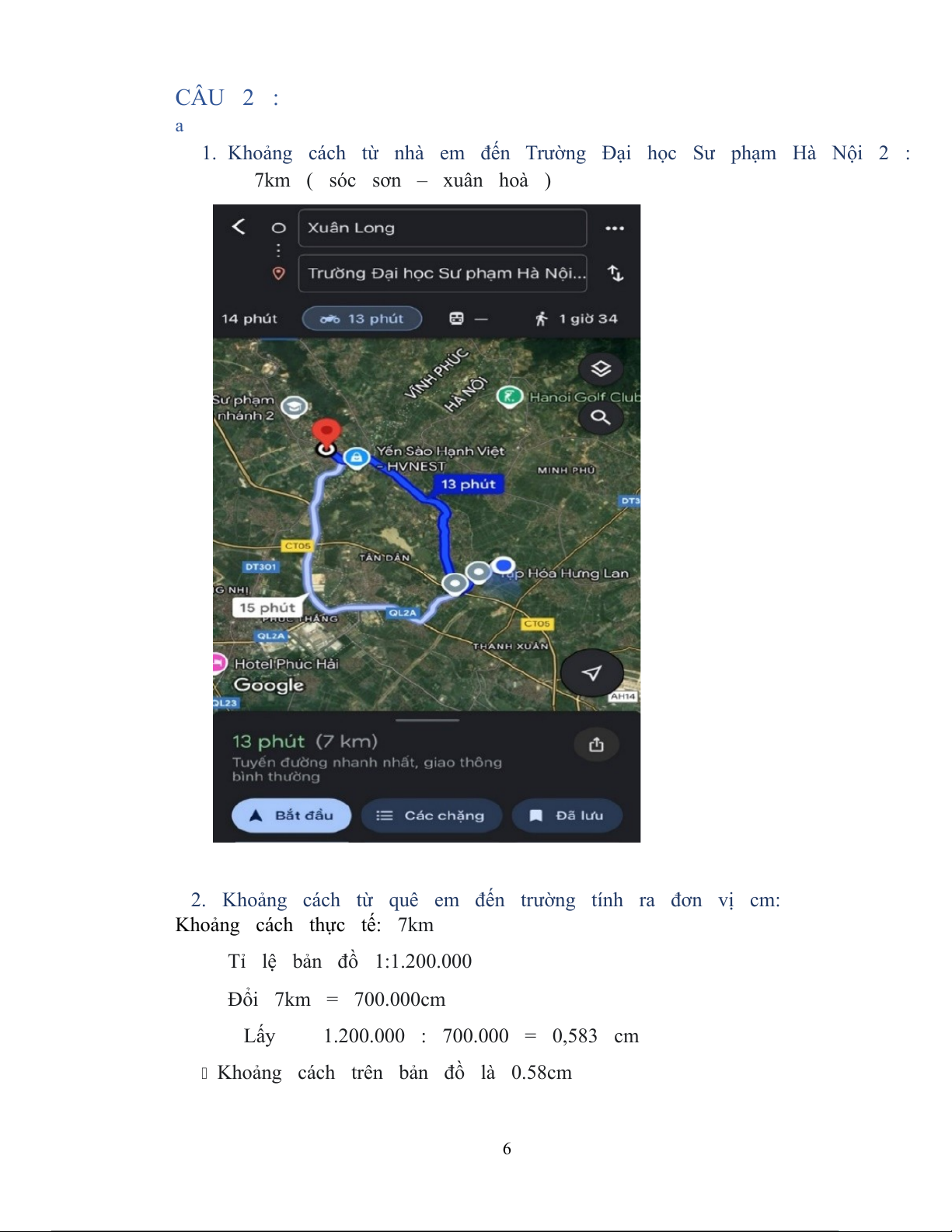 1. Khoảng cách từ nhà em đến Trường Đại học Sư phạm Hà Nội 2 :