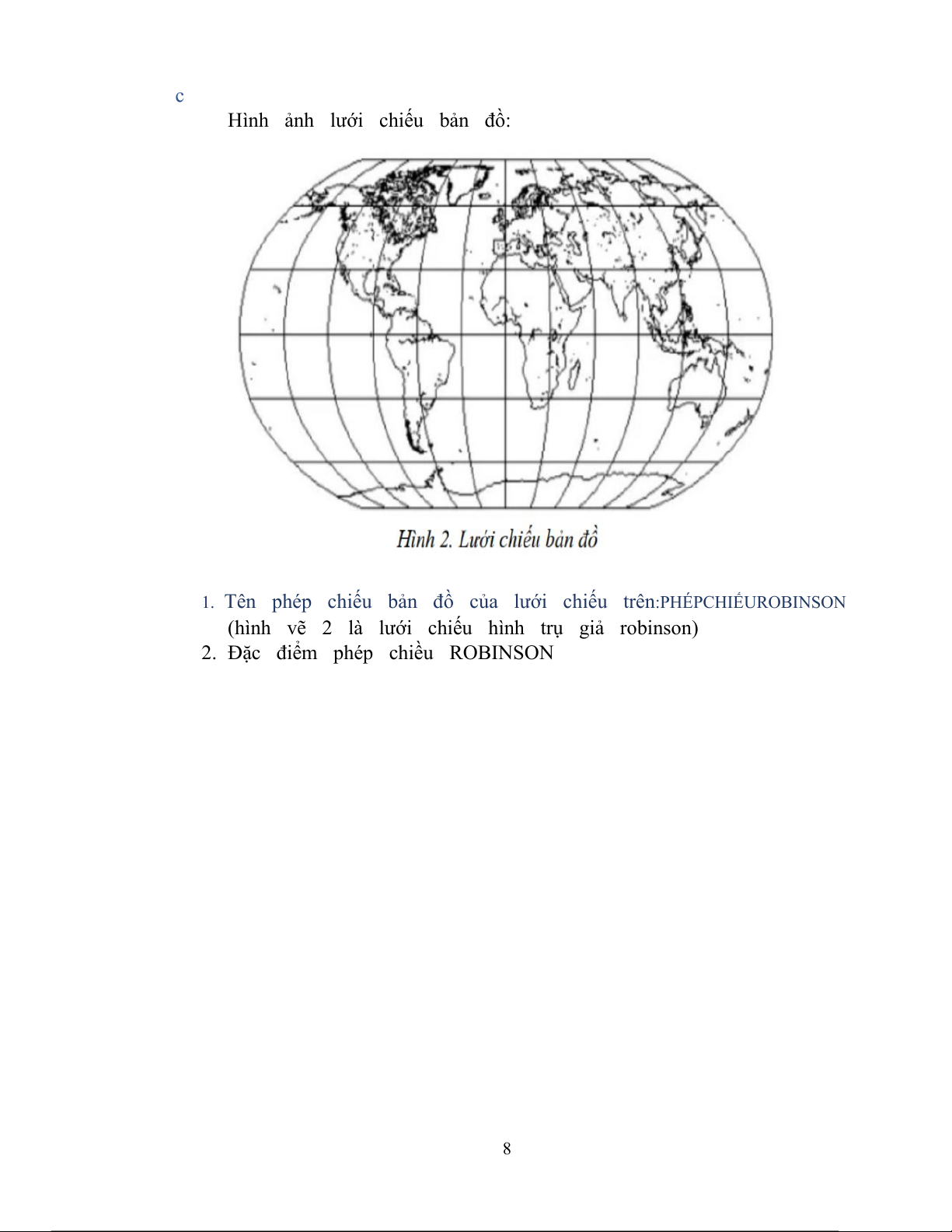 1. Tên phép chiếu bản đồ của lưới chiếu trên: PHÉP CHIẾU ROBINSON