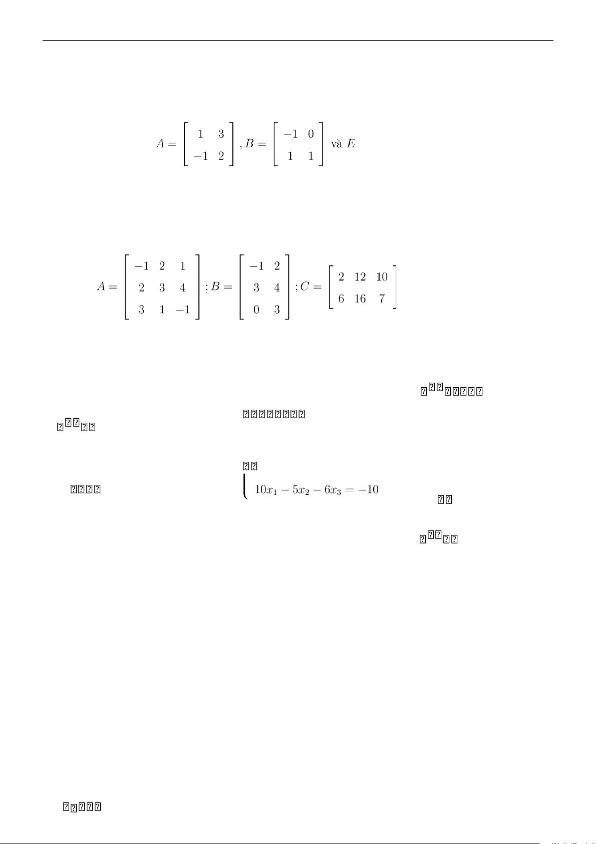 Chương II. Ma trận - Định thức - Hệ phương trình Bài 22. Cho các ma trận .