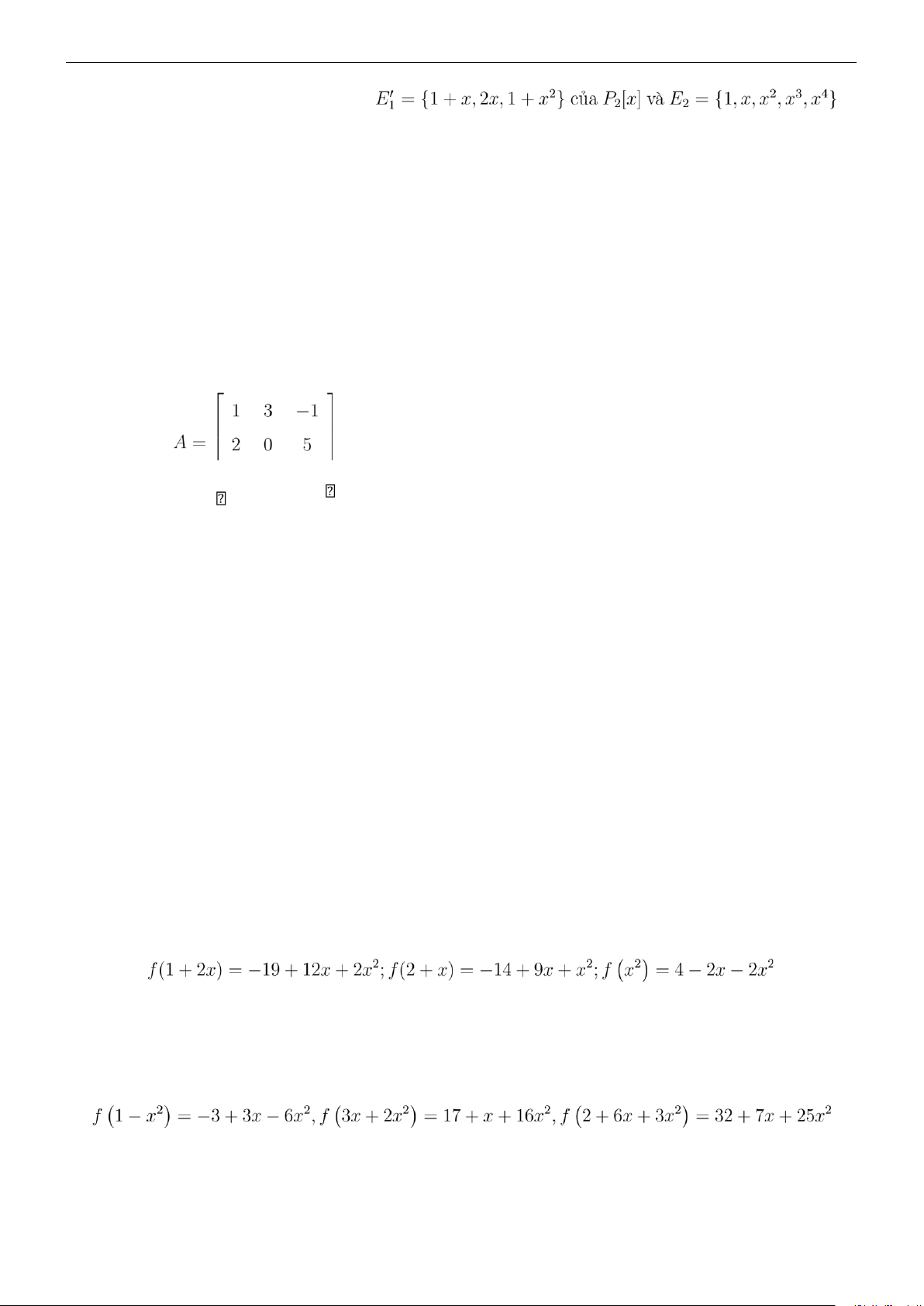 Bài 57. Cho ánh xạ f : P2[x] → P4[x] xác định như sau: f(p) = p + x2p,∀p ∈ P2[x]
