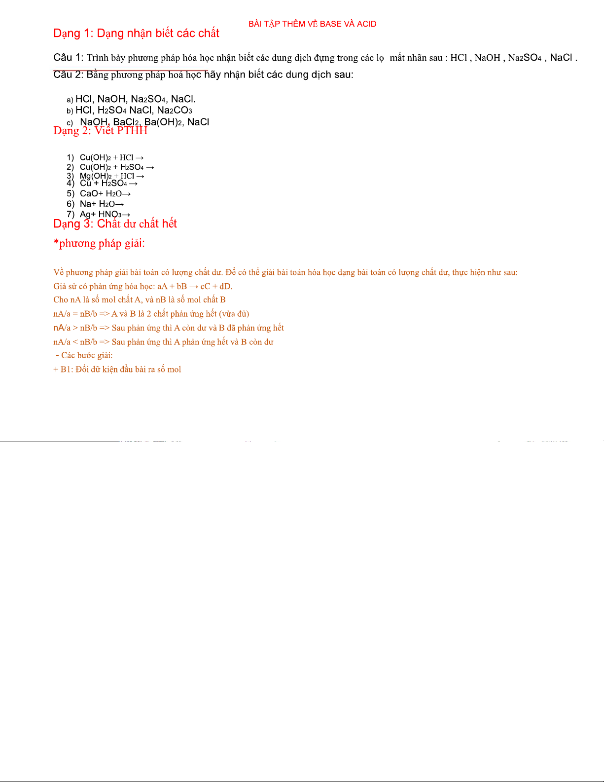 BÀI TẬP THÊM VỀ BASE VÀ ACID - CÁC PHƯƠNG PHÁP VÀ BÀI TẬP UY TÍN