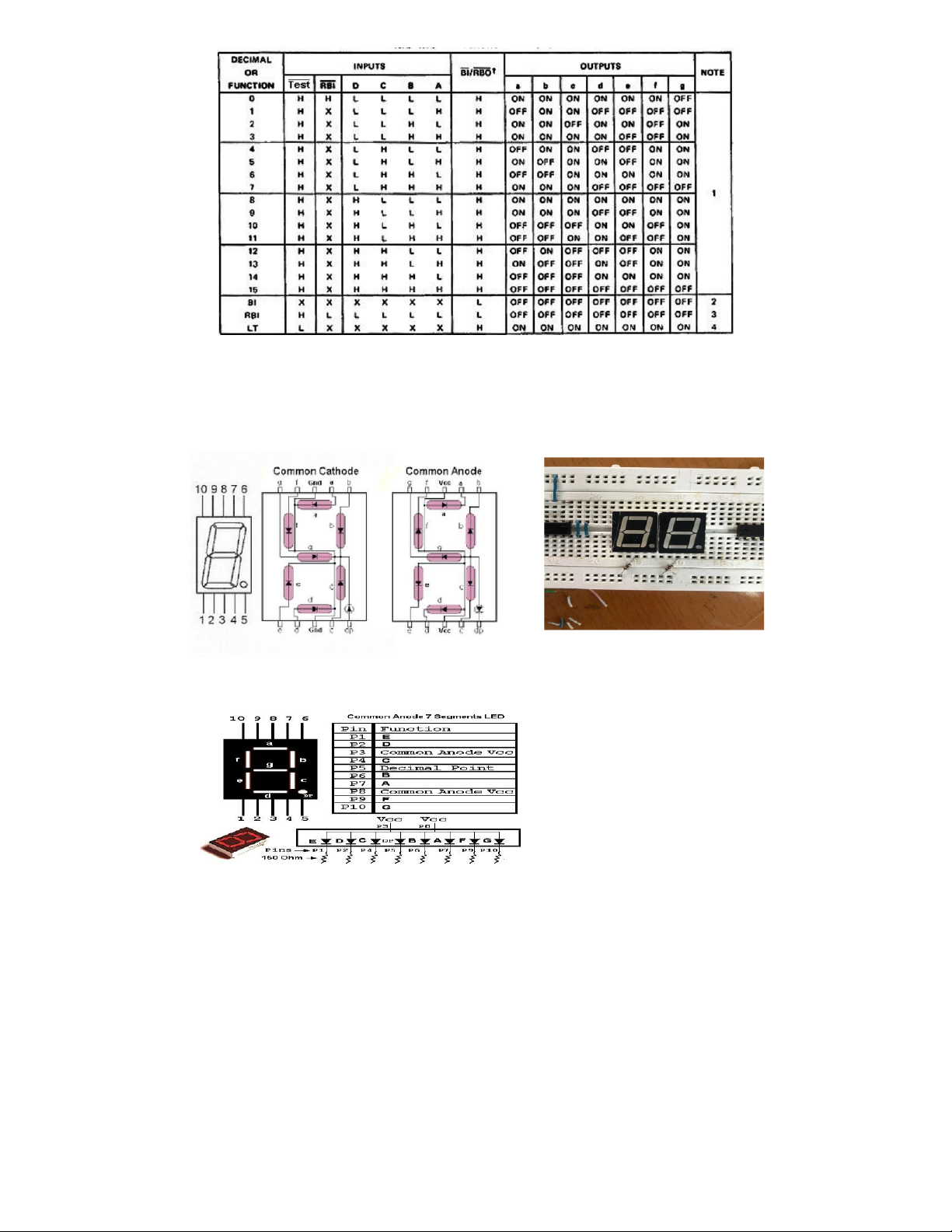 Bảng 1.3:Bảng mô tả hoạt động của 74LS47 1.4 LED 7 thanh - Số lượng: 2 Cái