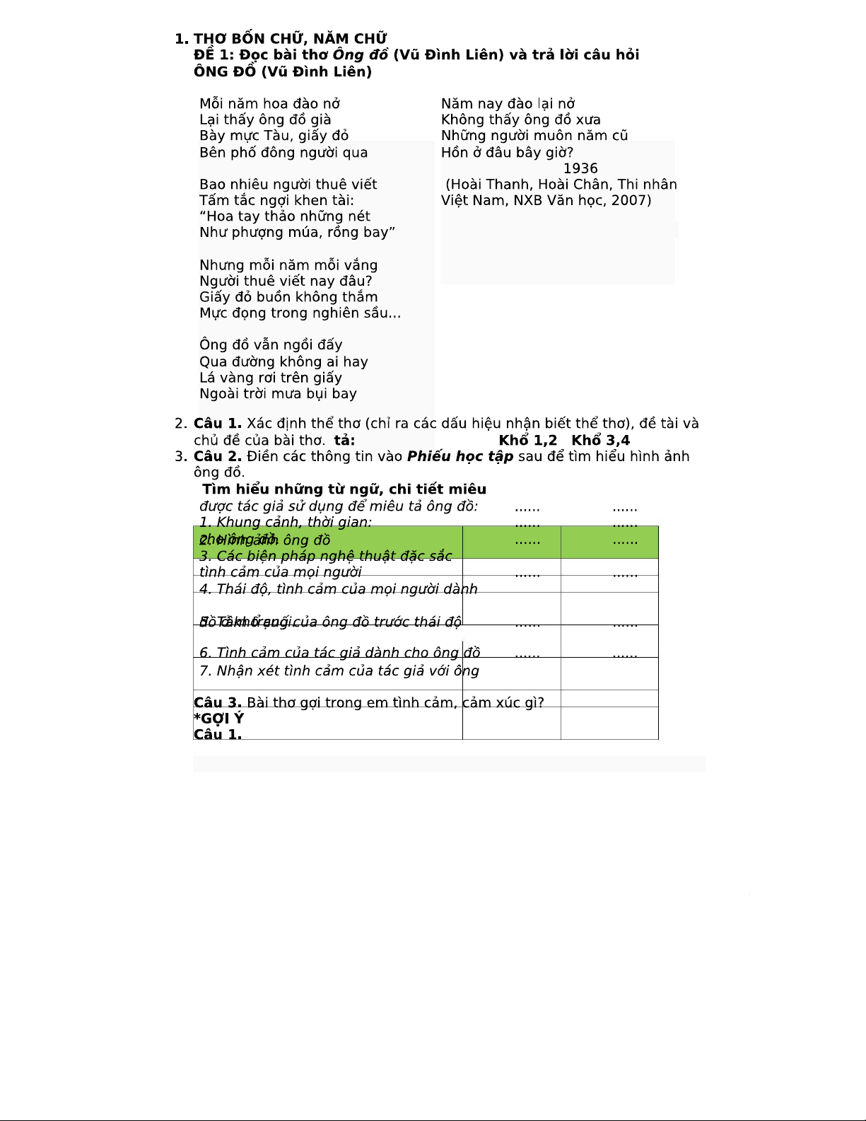 Bài Tập Thơ Bốn Chữ - Tìm Hiểu Bài "Ông Đồ" của Vũ Đình Liên