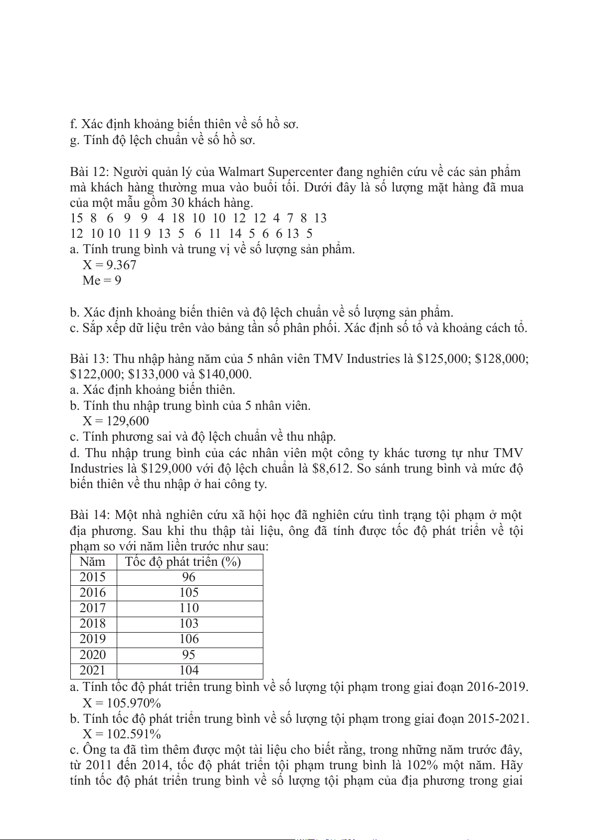 Bài 13: Thu nhập hàng năm của 5 nhân viên TMV Industries là $125,000; $128,000;