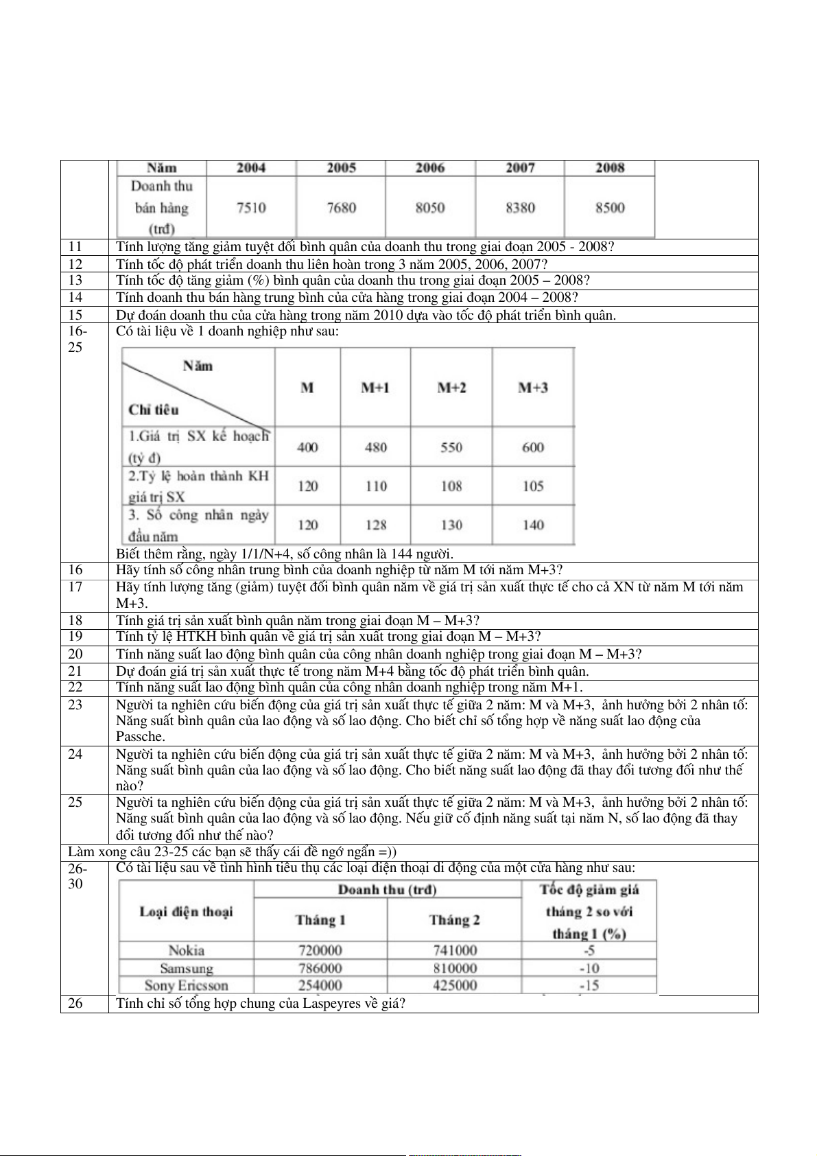 Hãy tính lượng tăng (giảm) tuyệt đối bình quân năm về giá trị sản xuất thực tế cho cả XN từ năm M tới năm M+3. 18