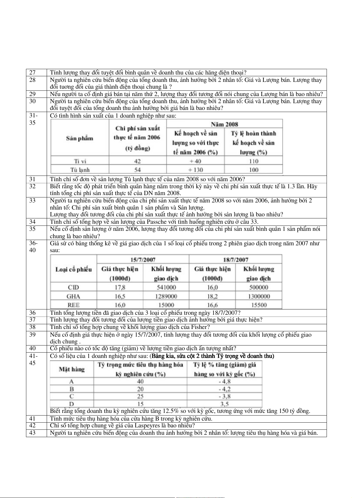 Tính chỉ số tổng hợp chung về khối lượng giao dịch của Fisher? 39
