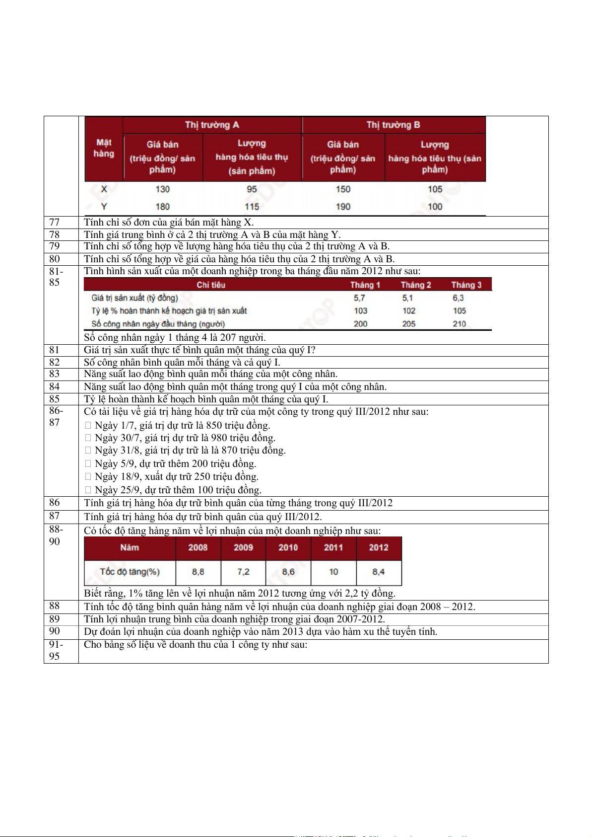 Tính tốc độ tăng bình quân hàng năm về lợi nhuận của doanh nghiệp giai đoạn 2008 – 2012. 89