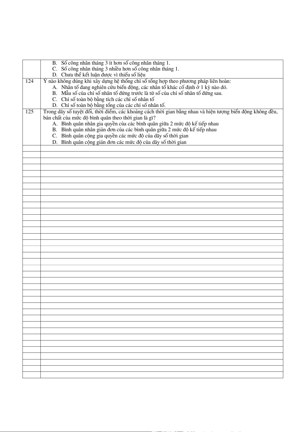 D. Chỉ số toàn bộ bằng tổng của các chỉ số nhân tố. 125