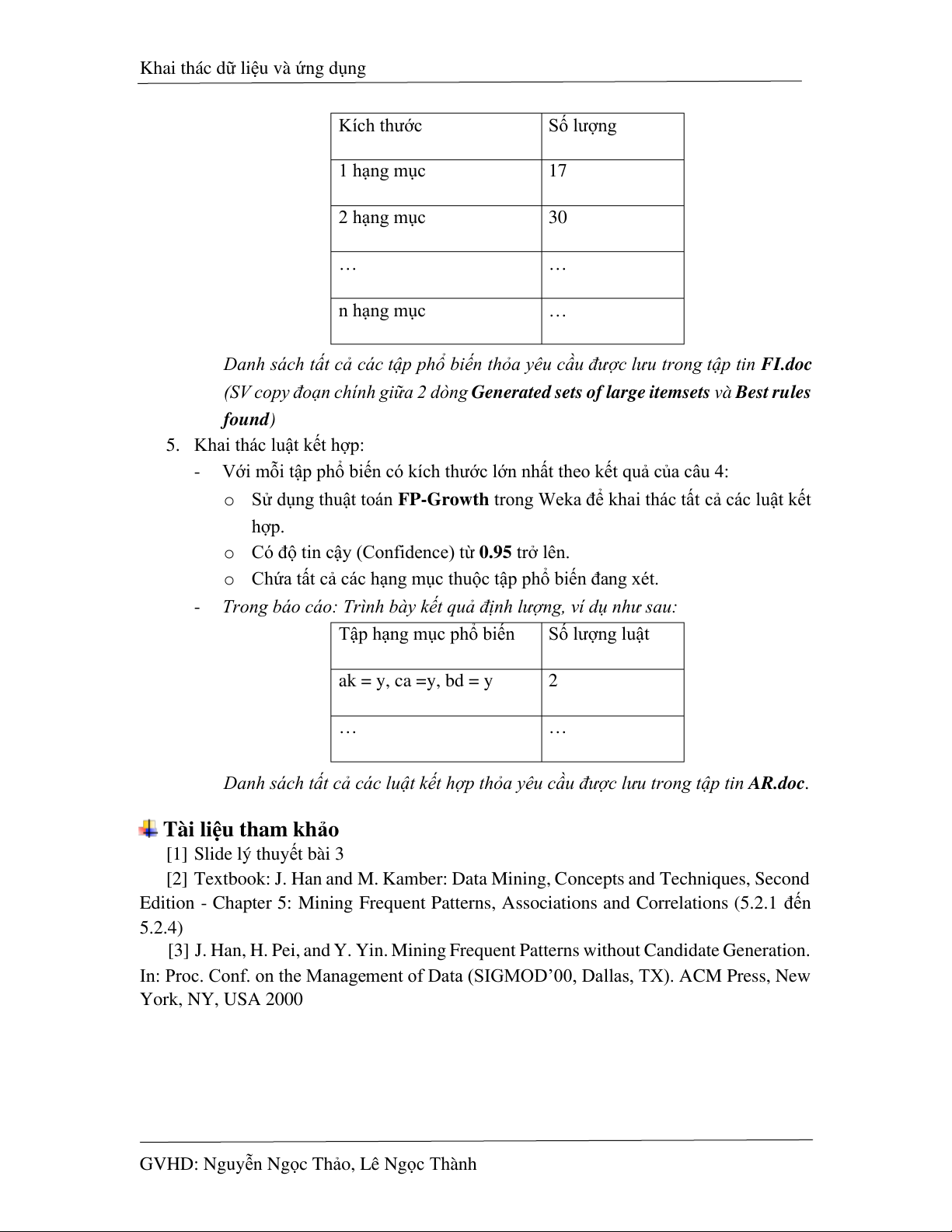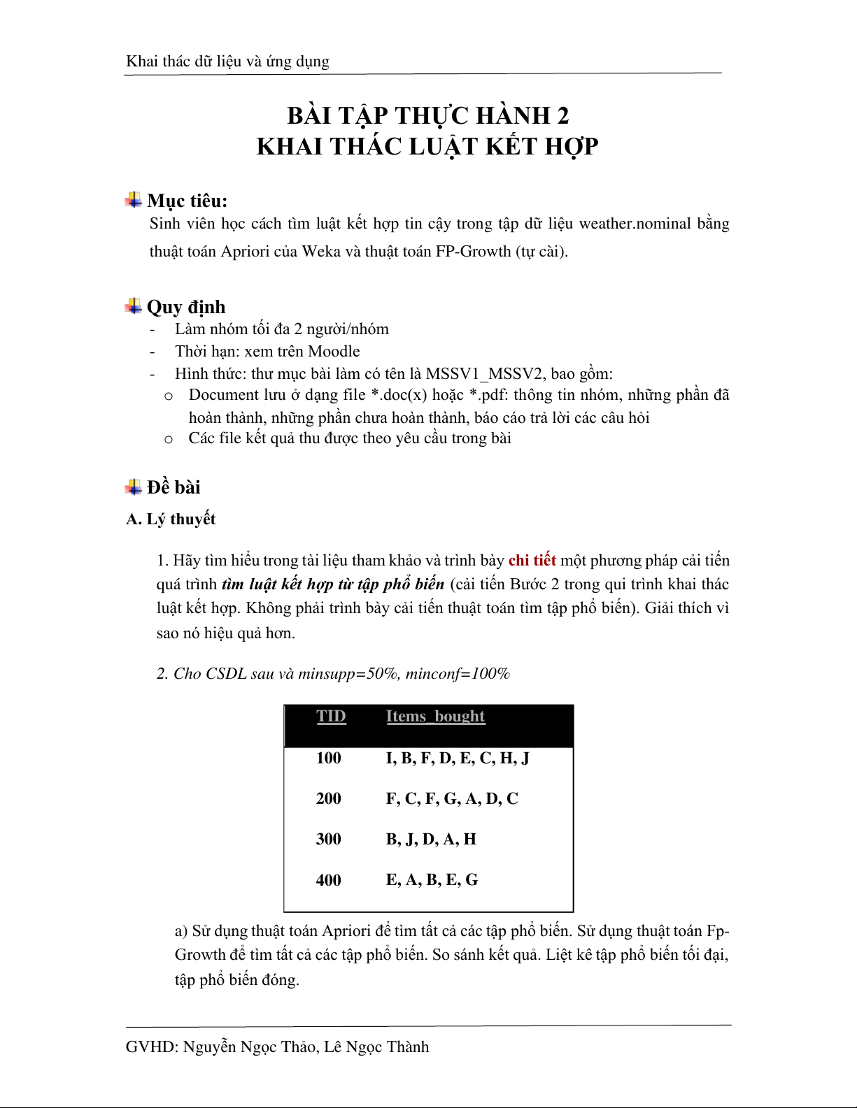 Khai thác dữ liệu và ứng d ng ụ BÀI TẬP THỰC HÀNH 2 KHAI THÁC LUẬT KẾT HỢP Mục tiêu: Sinh viên h c