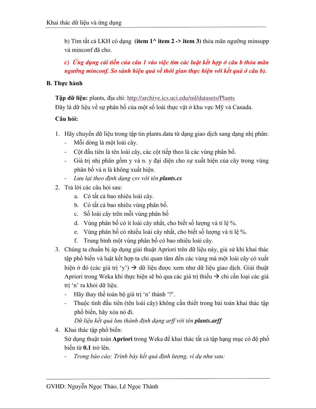 ngưỡng minconf. So sánh hiệu quả về thời gian thực hiện với kết quả ở câu b). B. Thực hành