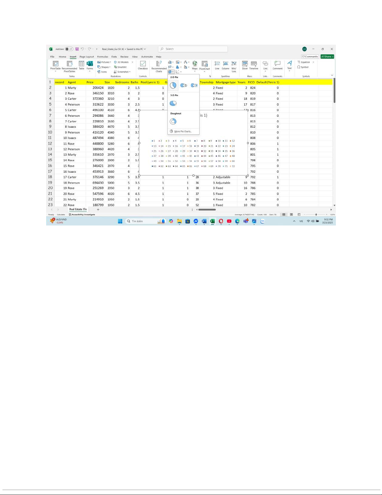 - Chèn đồ thị: Vào tab "Insert" > nhóm "Charts" > chọn "Pie Chart" (đồ thị hình tròn).