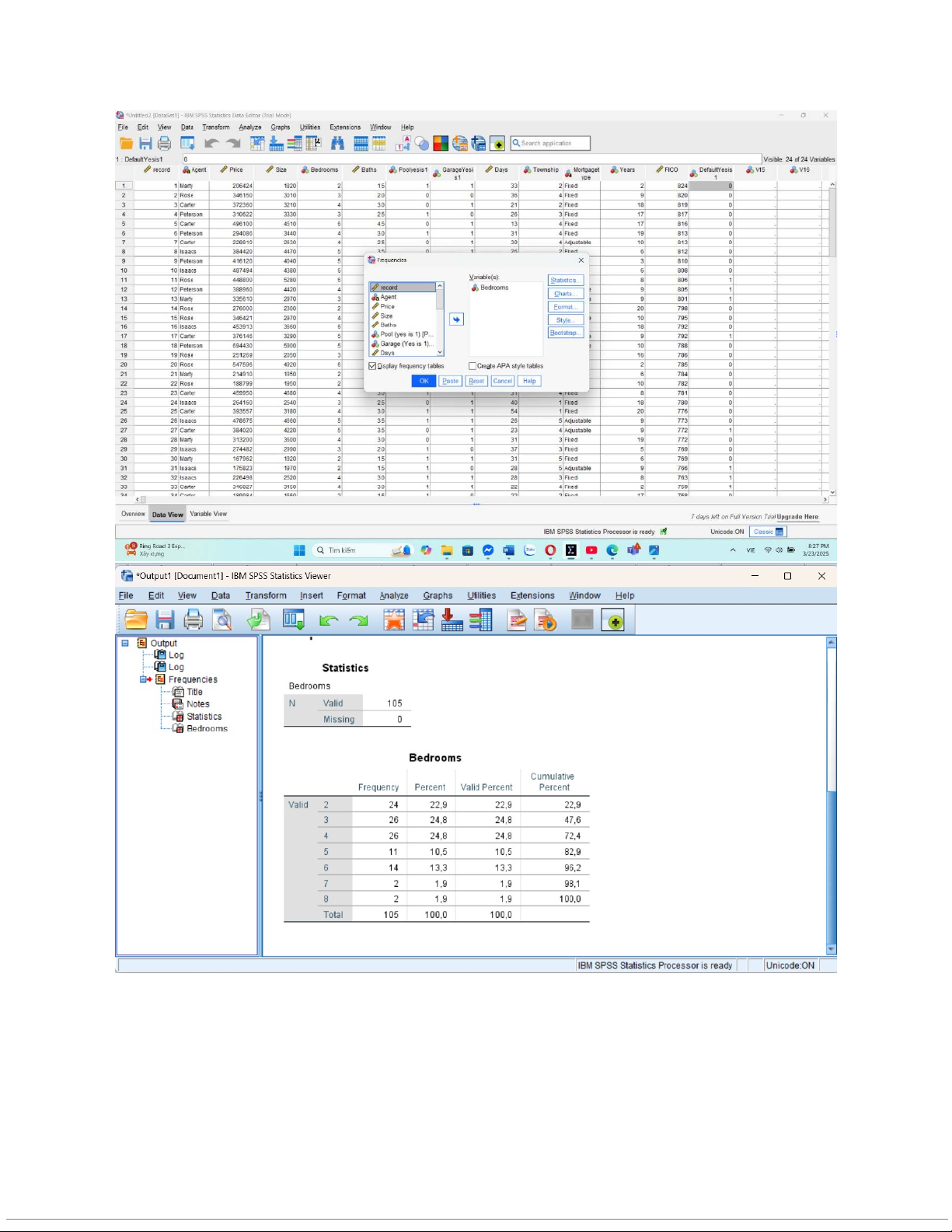 Câu 1: Lập bảng phân phối tần số đơn giản cho biến Bedrooms
