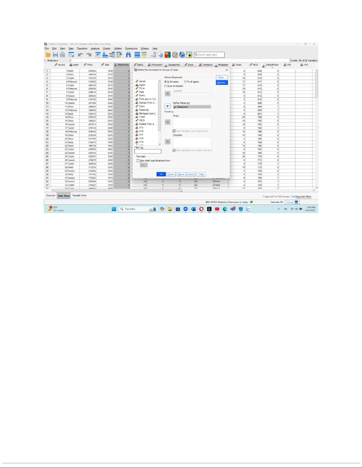 - Chọn biến Bedrooms và đưa vào ô Define Slices by.