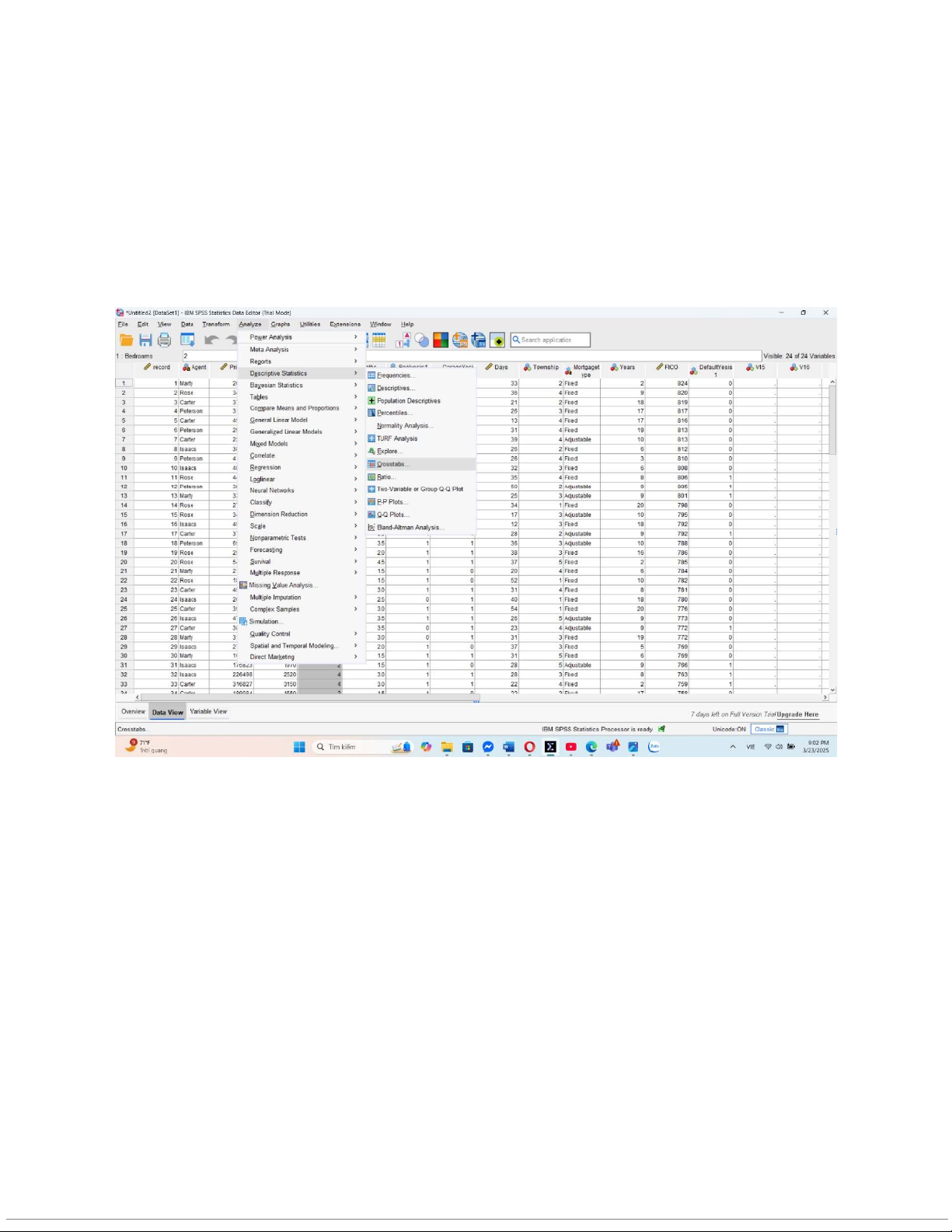 - Vào Analyze > Descriptive Statistics > Crosstabs