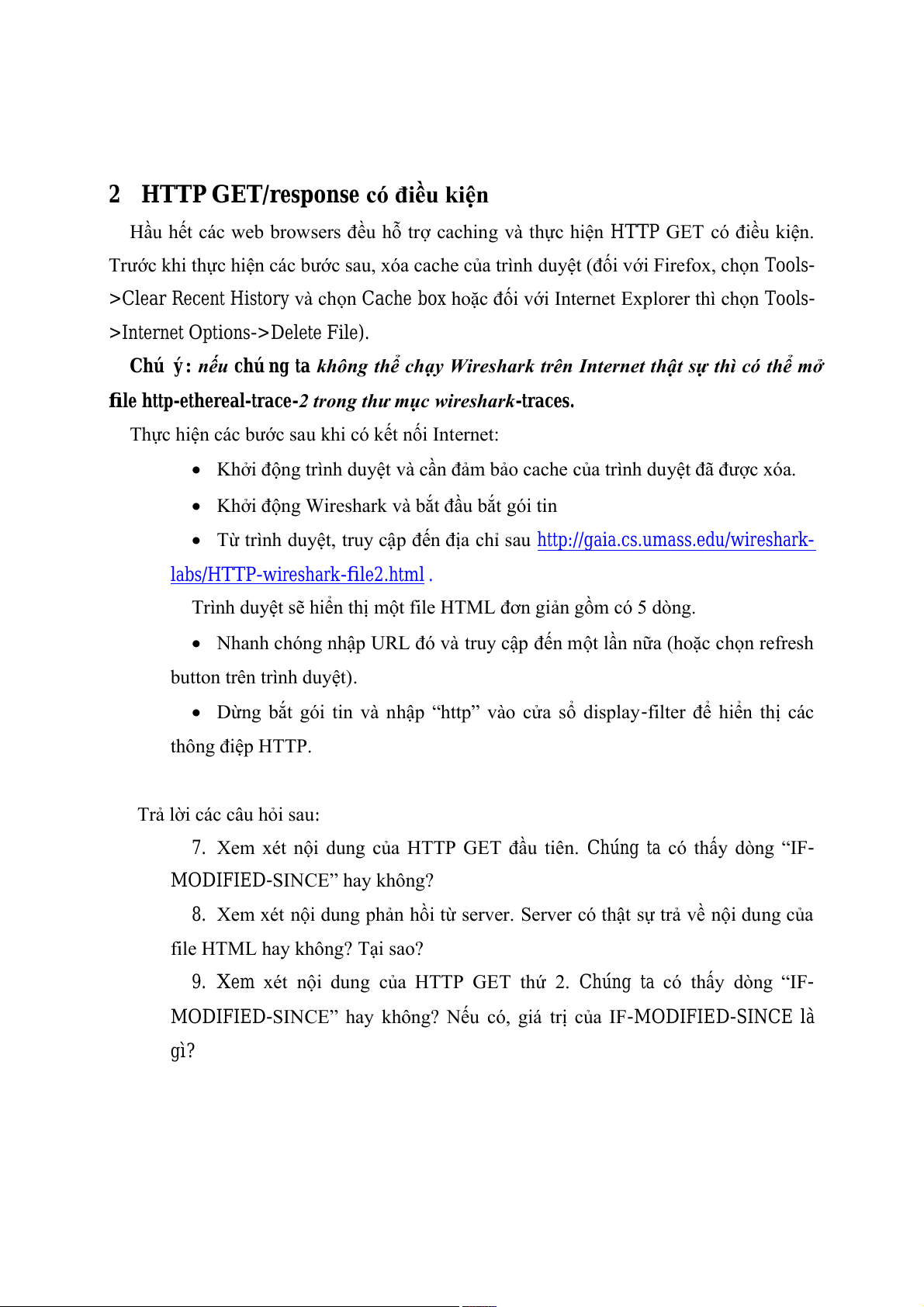 • Từ trình duyệt, truy cập đến địa chỉ sau: ht p:/ gaia.cs.umass.edu/wireshark-