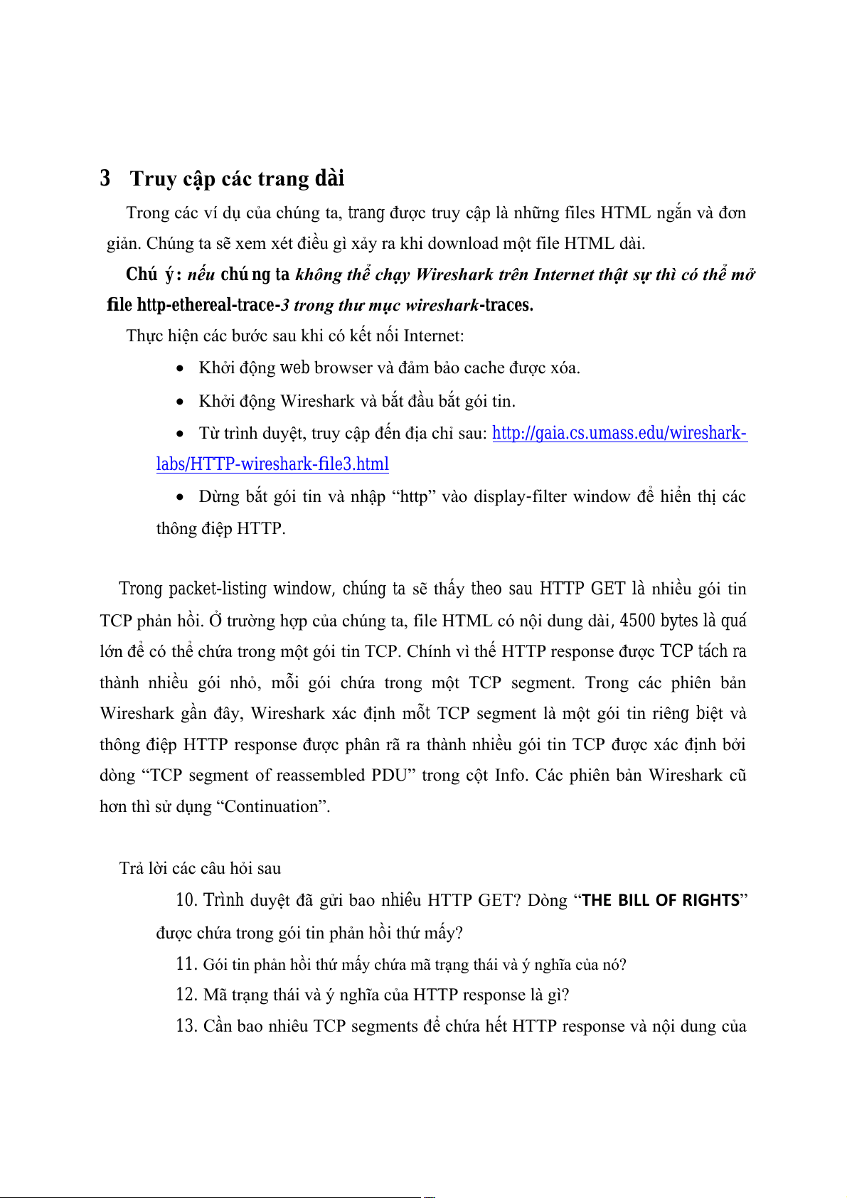 • Từ trình duyệt, truy cập đến địa chỉ sau ht p:/ gaia.cs.umass.edu/wireshark-