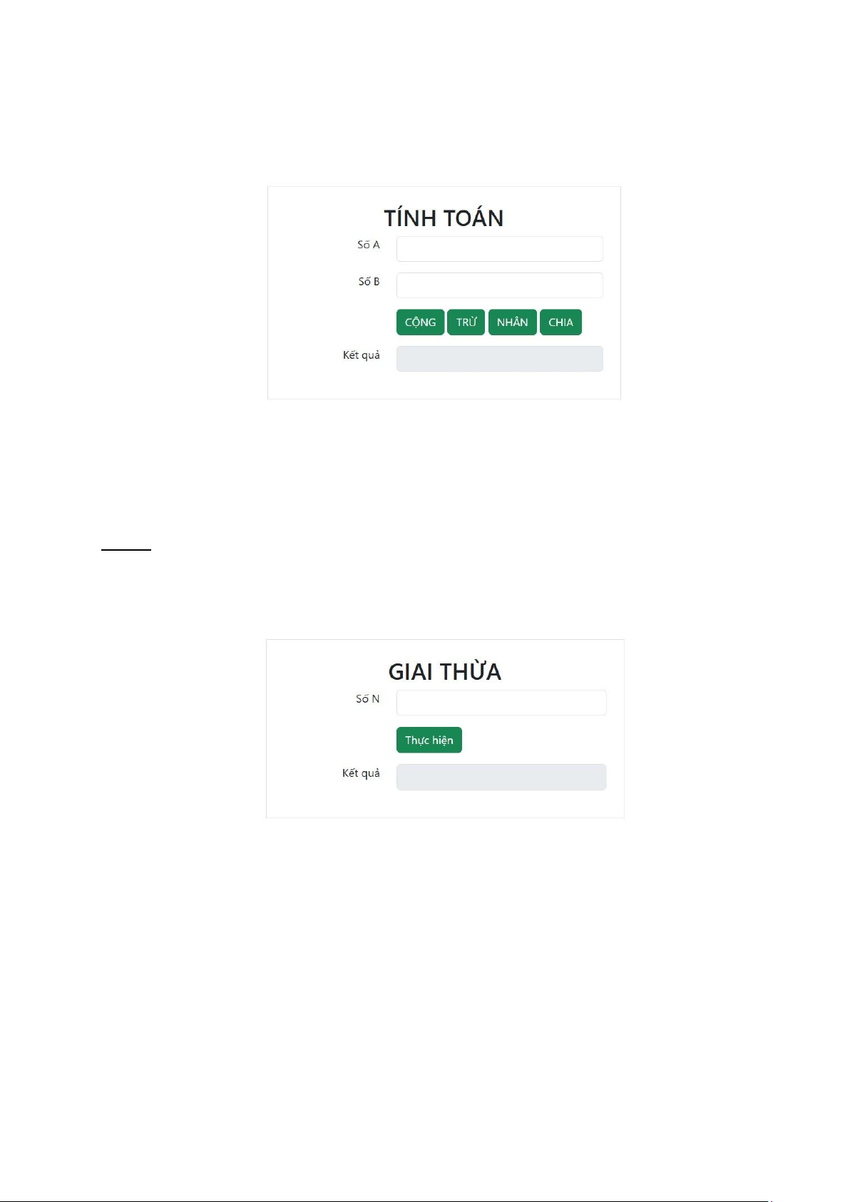 Bài 1. Xây dựng form như hình sau để nhập vào 2 số (sử dụng input) và thực hiện các yêu cầu sau: