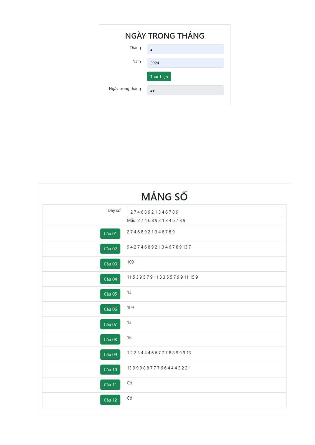 - Nhấn "Thực hiện" lấy ngày tháng năm hợp lệ, và cho biết ngày trong tháng, năm đó có bao nhiêu ngày.