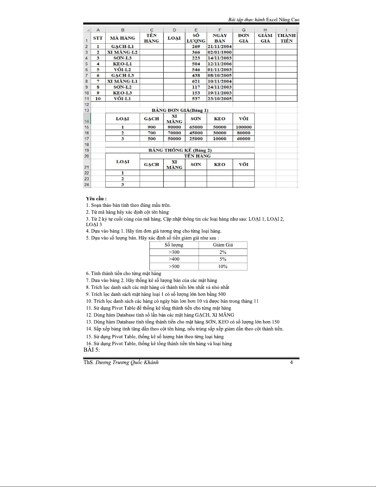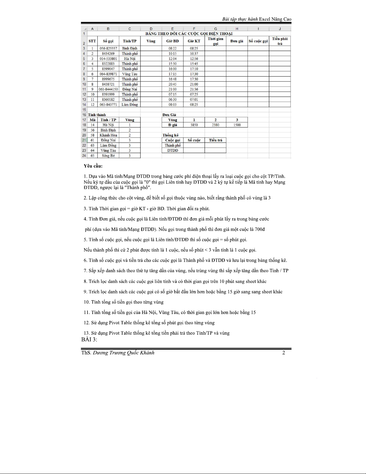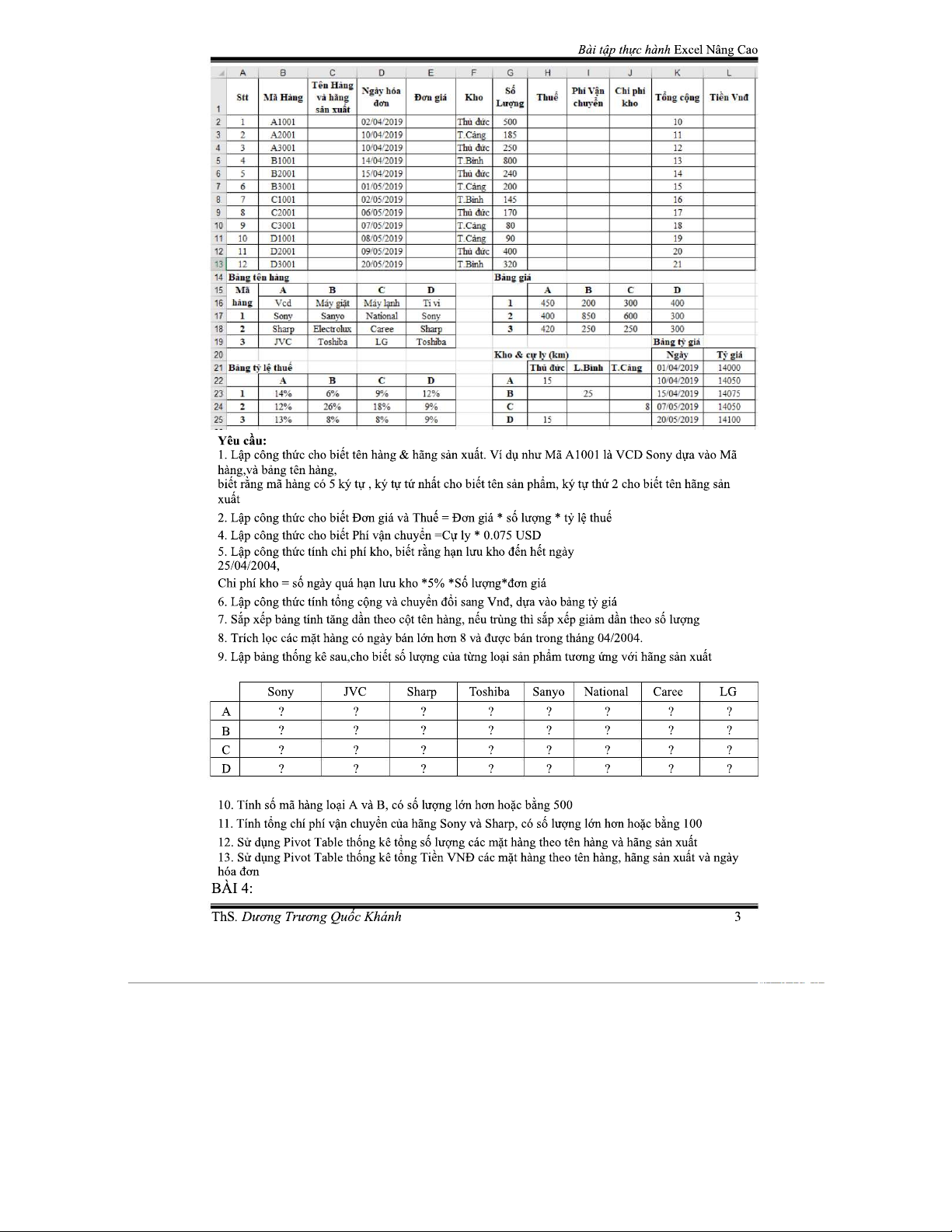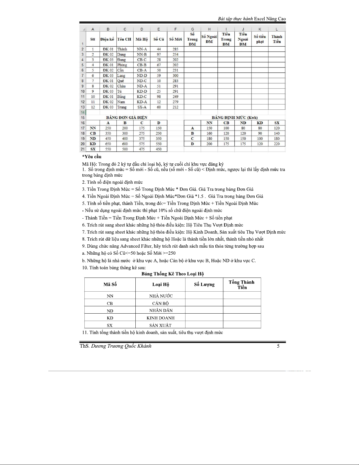 BÀI TẬP THỰC HÀNH MICROSOFT EXCEL NÂNG CAO - ÔN THI TIN 2023