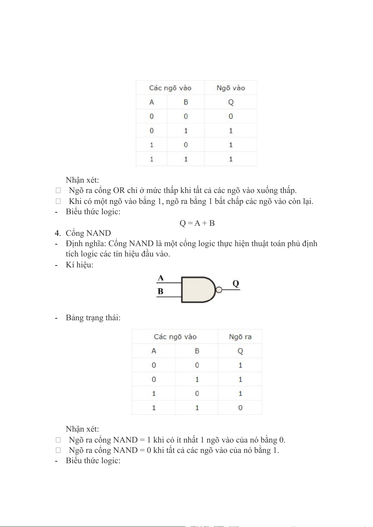 Khi có một ngõ vào bằng 1, ngõ ra bằng 1 bất chấp các ngõ vào còn lại. - Biểu thức logic: Q = A + B 4. Cổng NAND