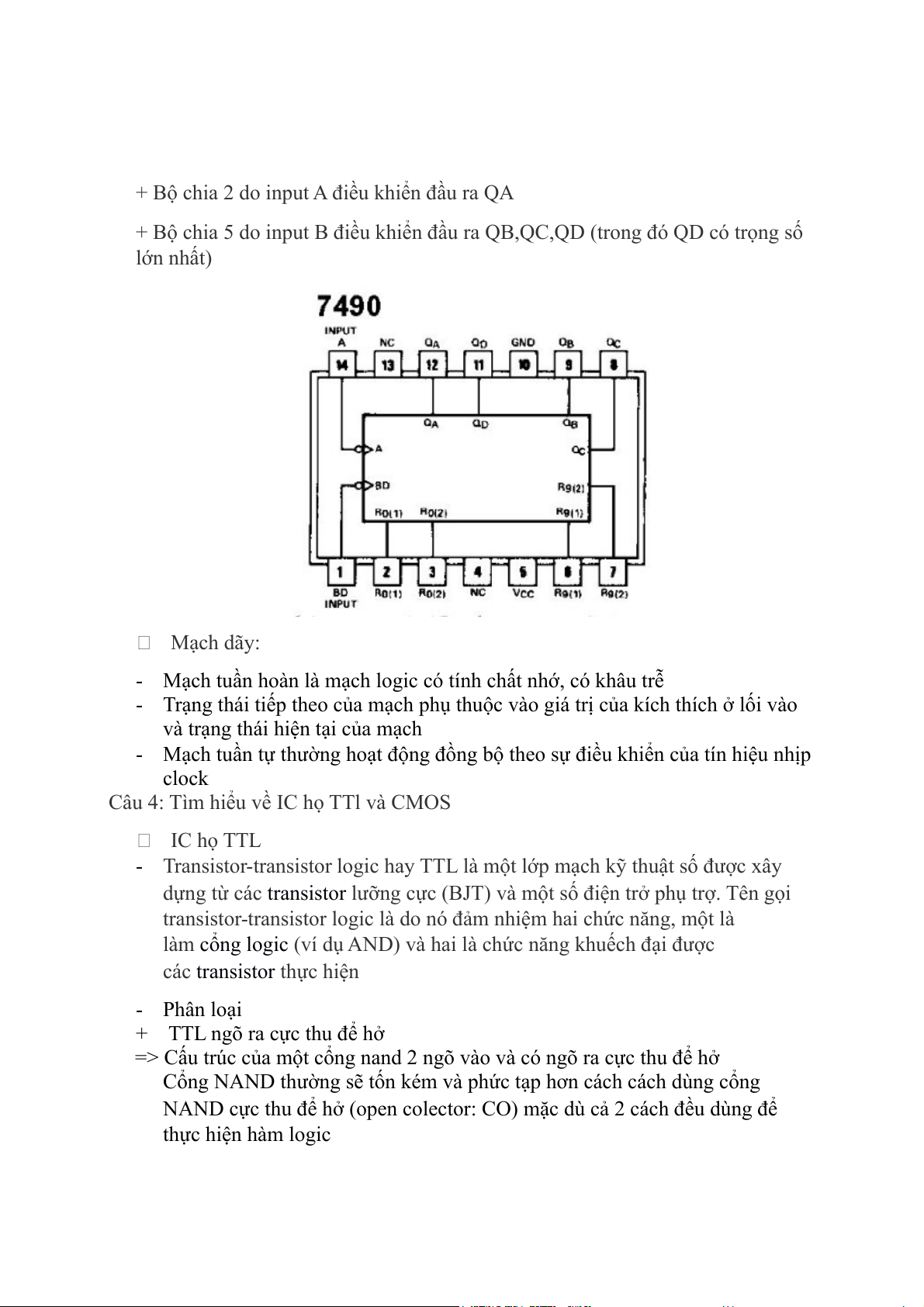 Câu 4: Tìm hiểu về IC họ TTl và CMOS IC họ TTL