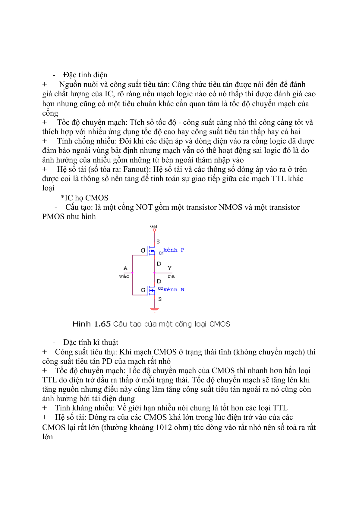 + Công suất tiêu thụ: Khi mạch CMOS ở trạng thái tĩnh (không chuyển mạch) thì