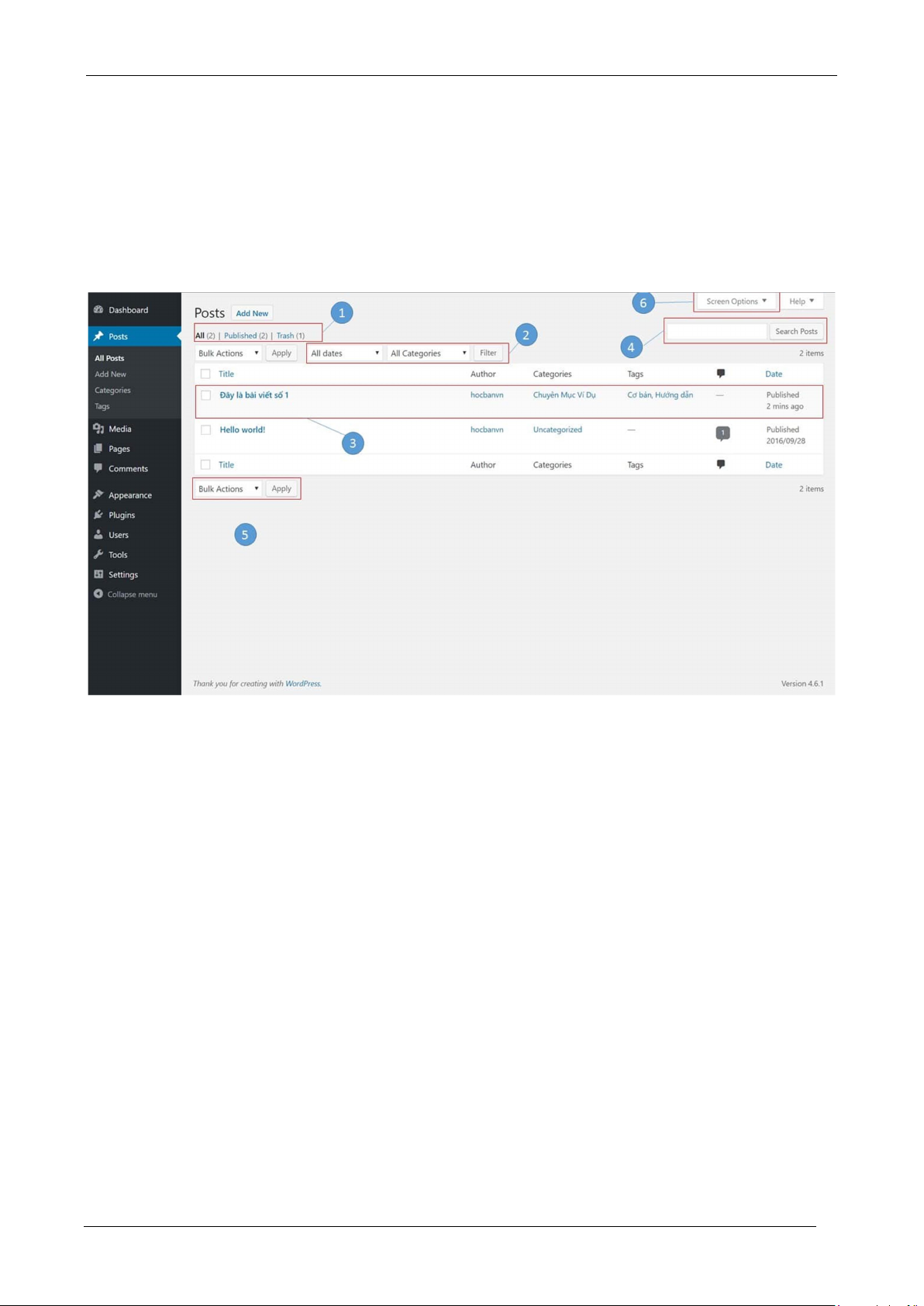 nhóm theo từng chuyên mục (Categories) và các chủ đề liên quan (Tags). Quản lý bài viết là việc