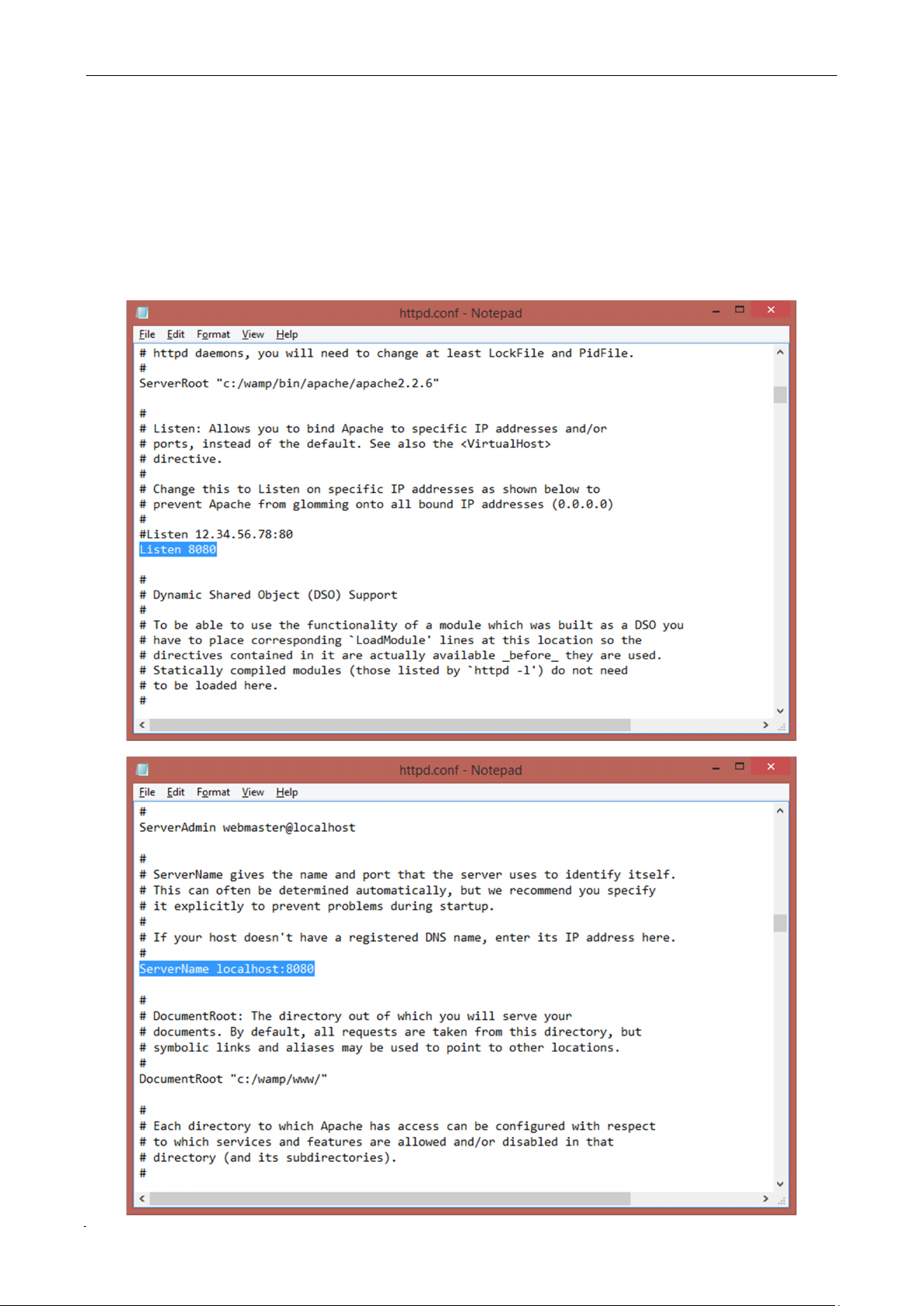 Cài đặt Wampp (hoặc xampp). Sau khi cài đặt xong, vào file ht pd.conf đổi cổng kết nối sang