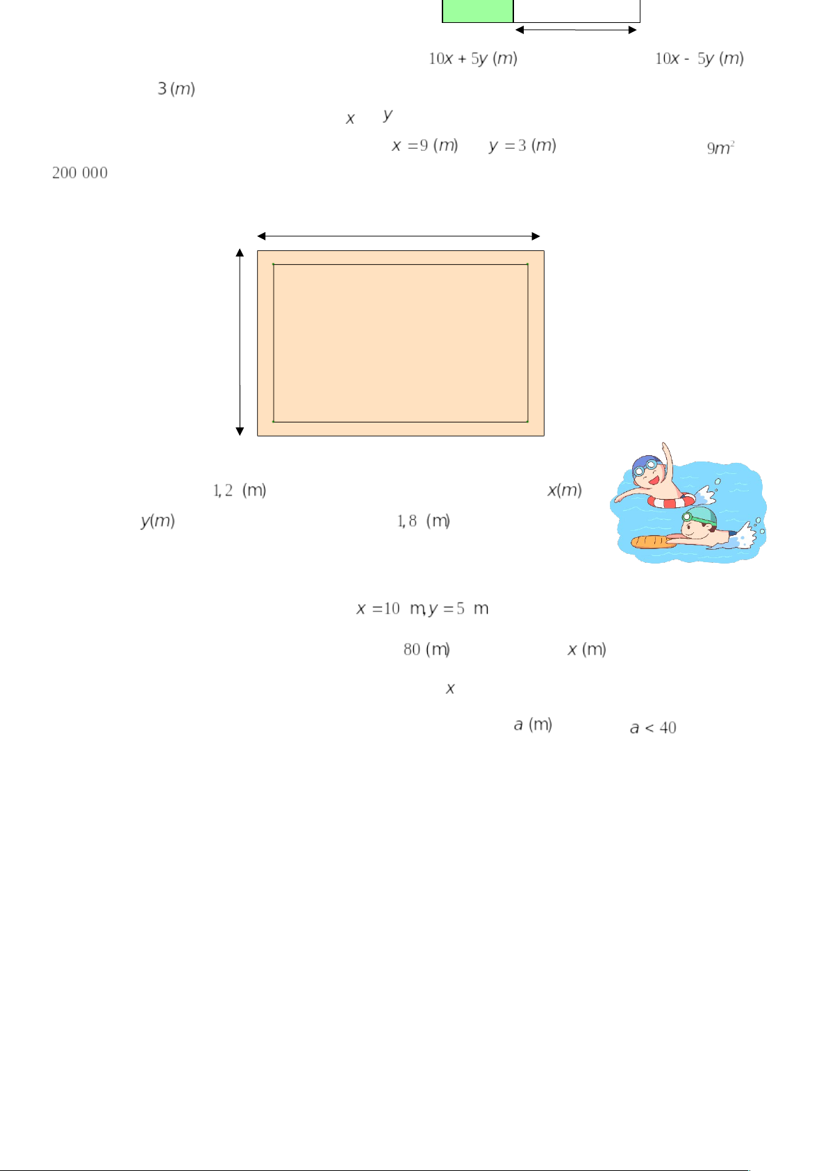 Bài 7 .Trong một khách sạn có hai bể bơi dạng hình hộp chữ nhật. Bể thứ nhất có chiều sâu là , đáy là hình chữ nhật có chiều dài