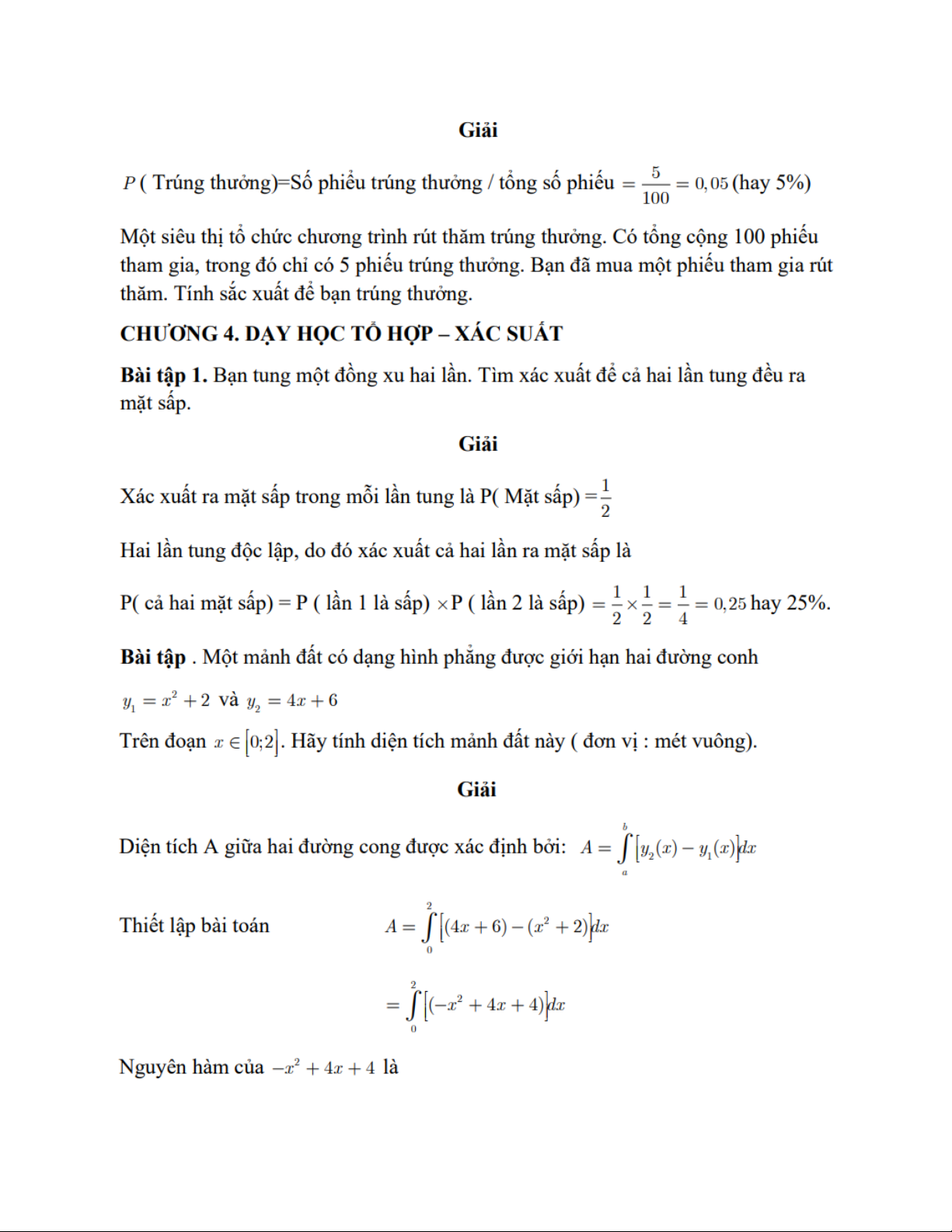 Bài tập thực tế Chương I: Dạy học giải tích xác suất môn Giải tích 2 | Đại học Đồng Tháp